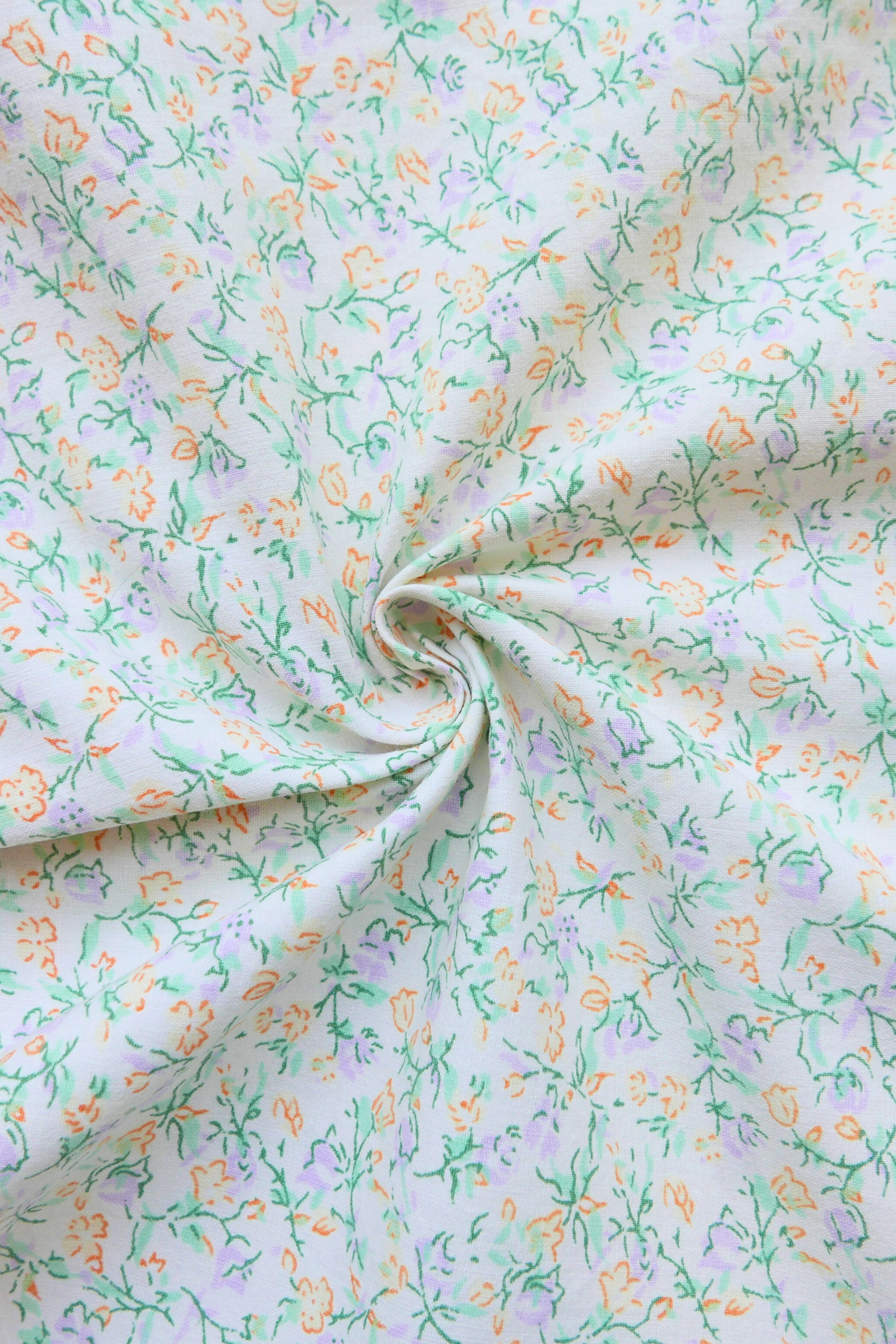 Tissu - Coton - Fond blanc avec de petites fleurs aux teintes mauves - 80 cm * 105 cm
