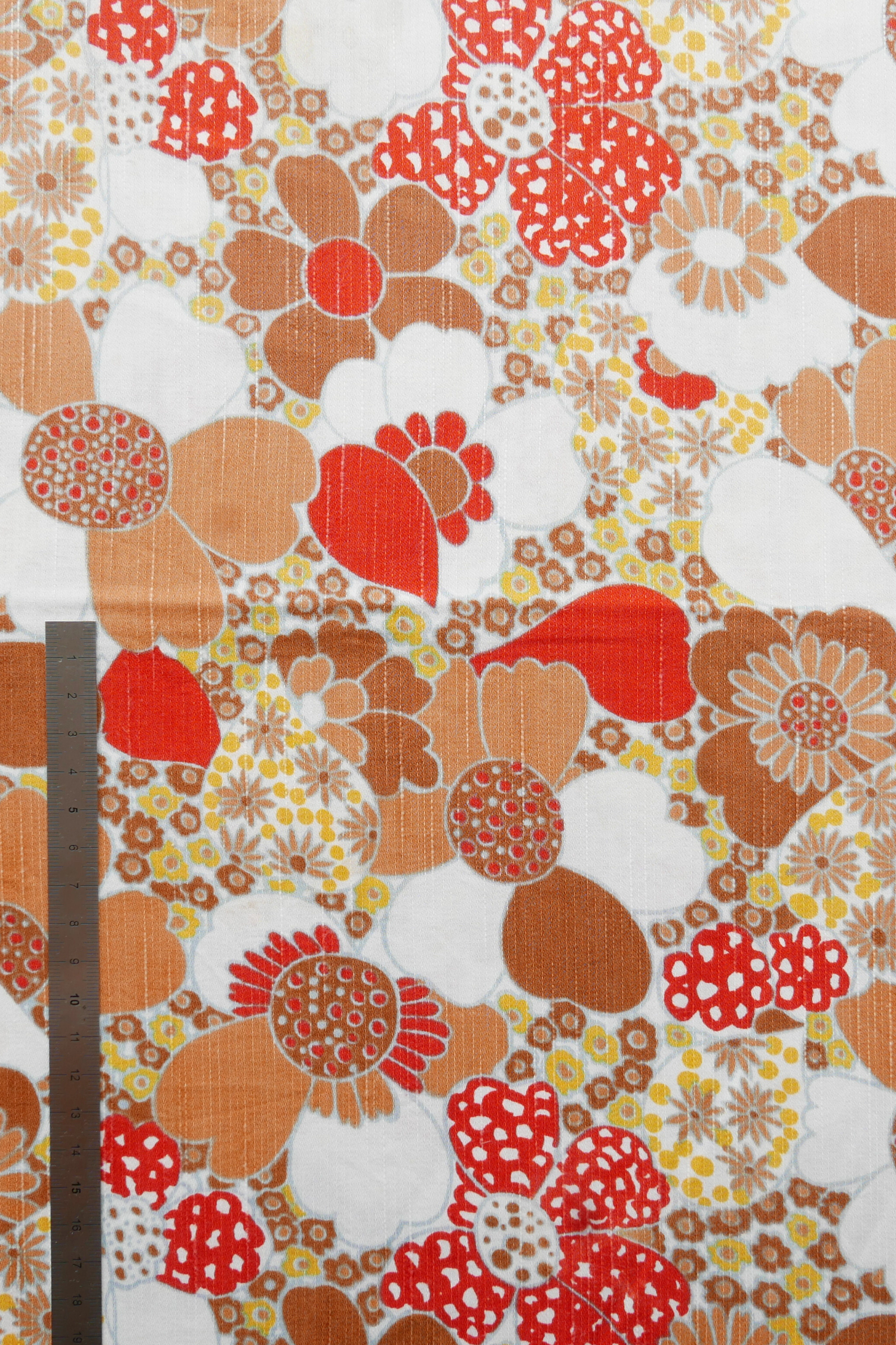 Tissu - Coton - Fond blanc avec des fleurs rouges, orange et jaunes - 85 * 126 cm
