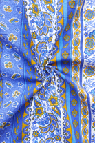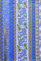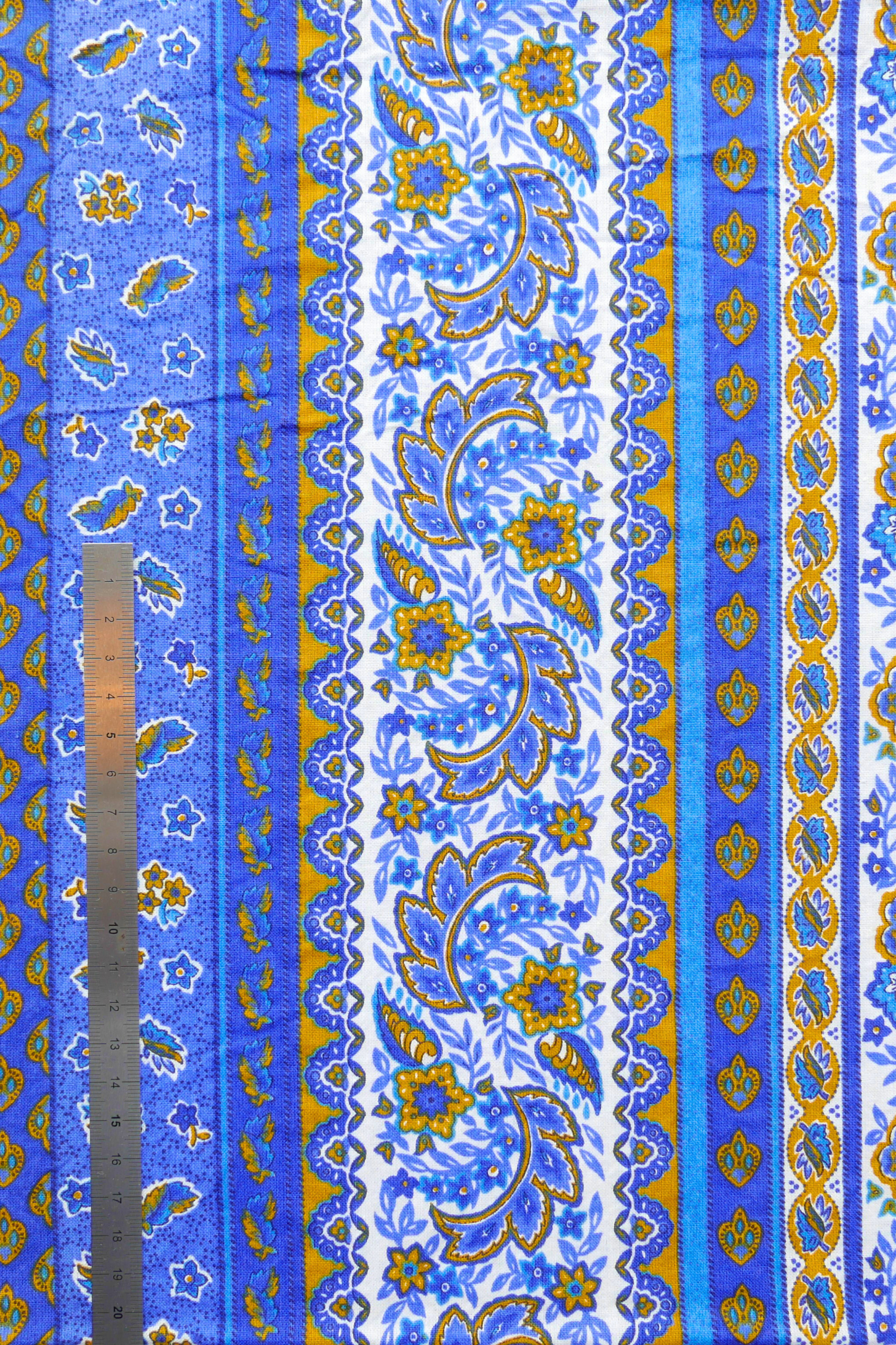 Tissu - Coton - Fond bleu avec des lignes aux motifs fleuris - 155 cm * 157 cm