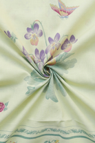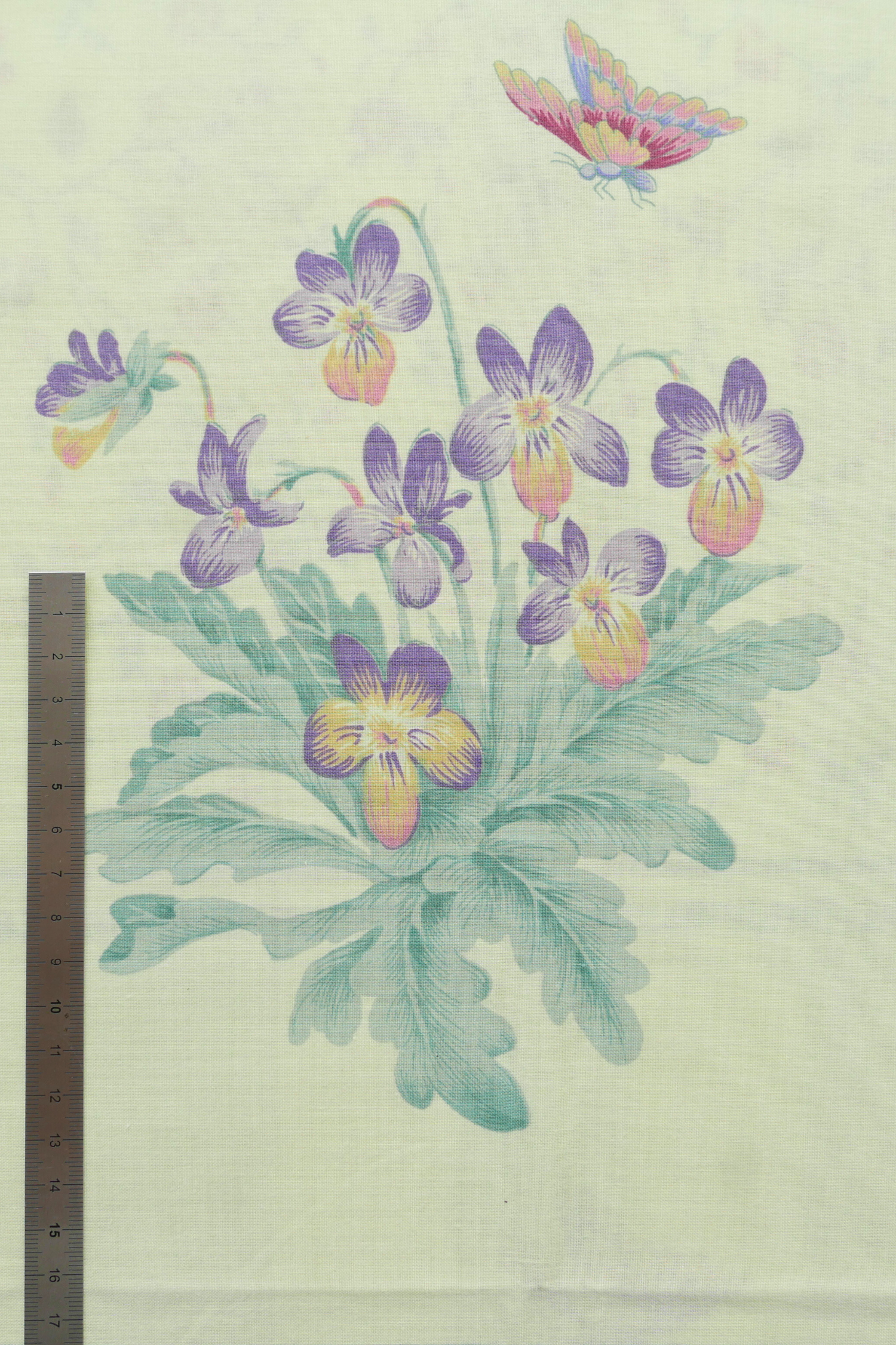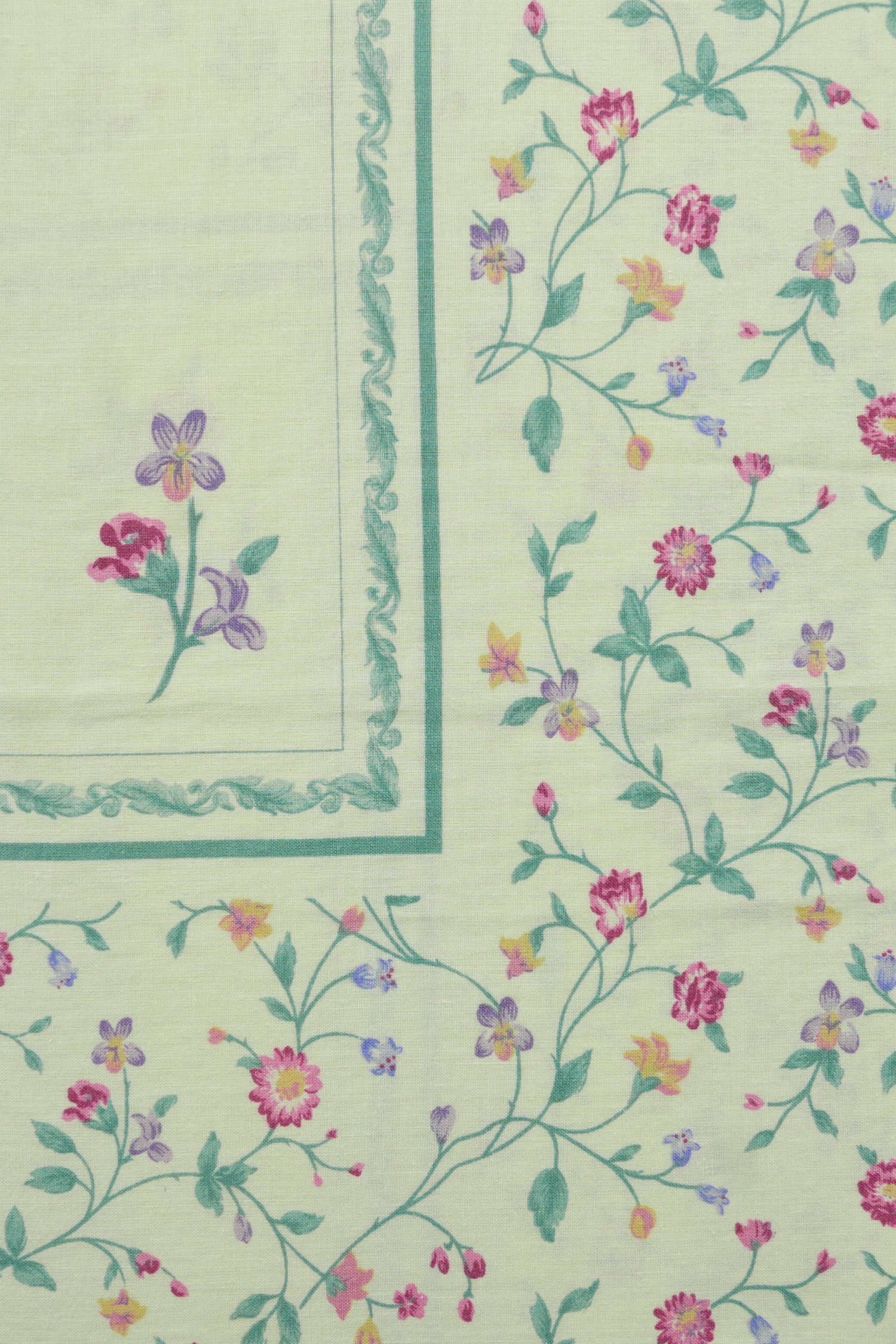 Tissu - Coton - Fond vert avec des petites fleurs aux teintes mauves et vertes - 70 cm * 166 cm