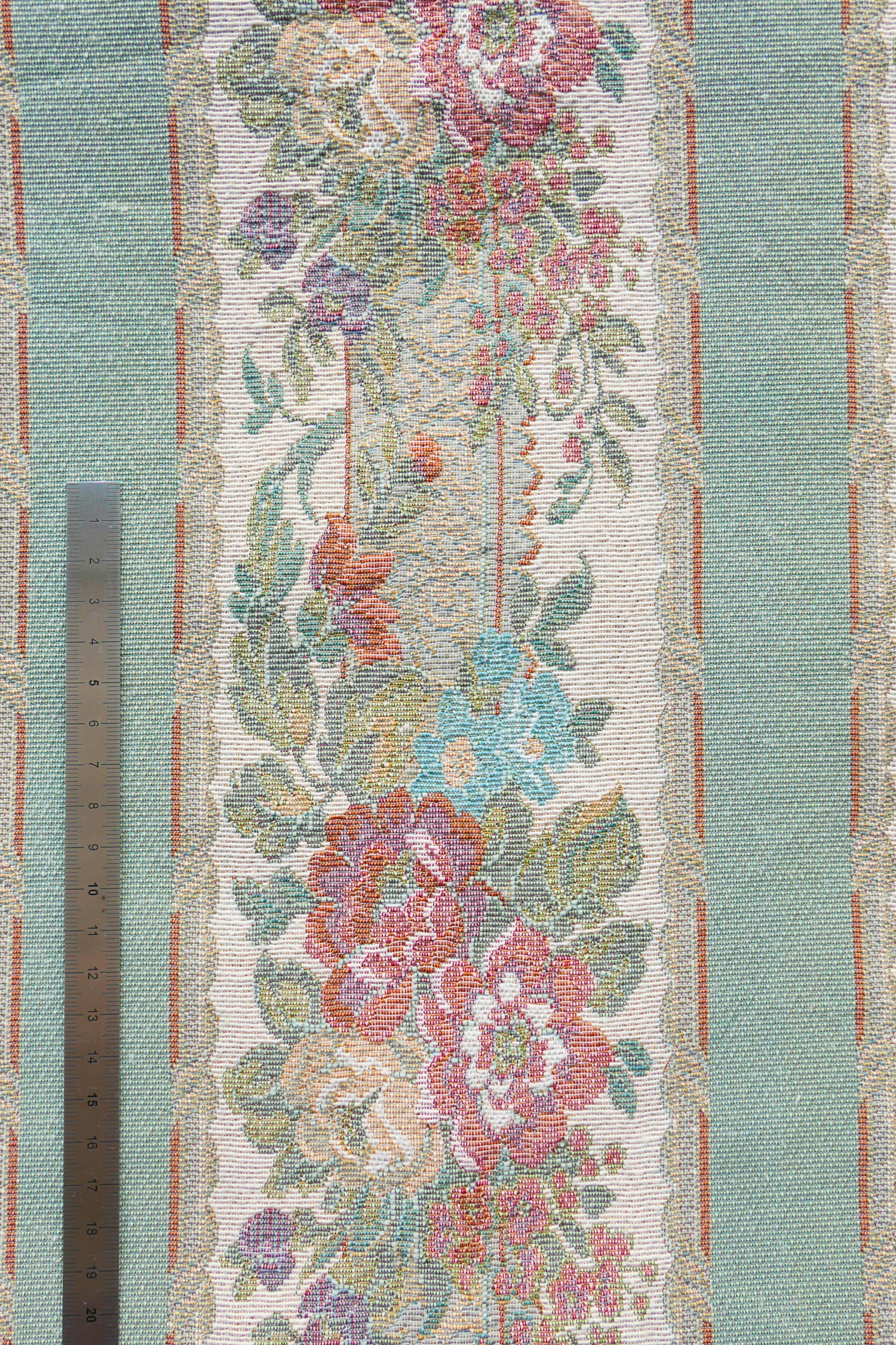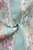 Tissu - Polyester - Bandes vertes ornées de fleurs aux teintes roses - 130 cm * 200 cm