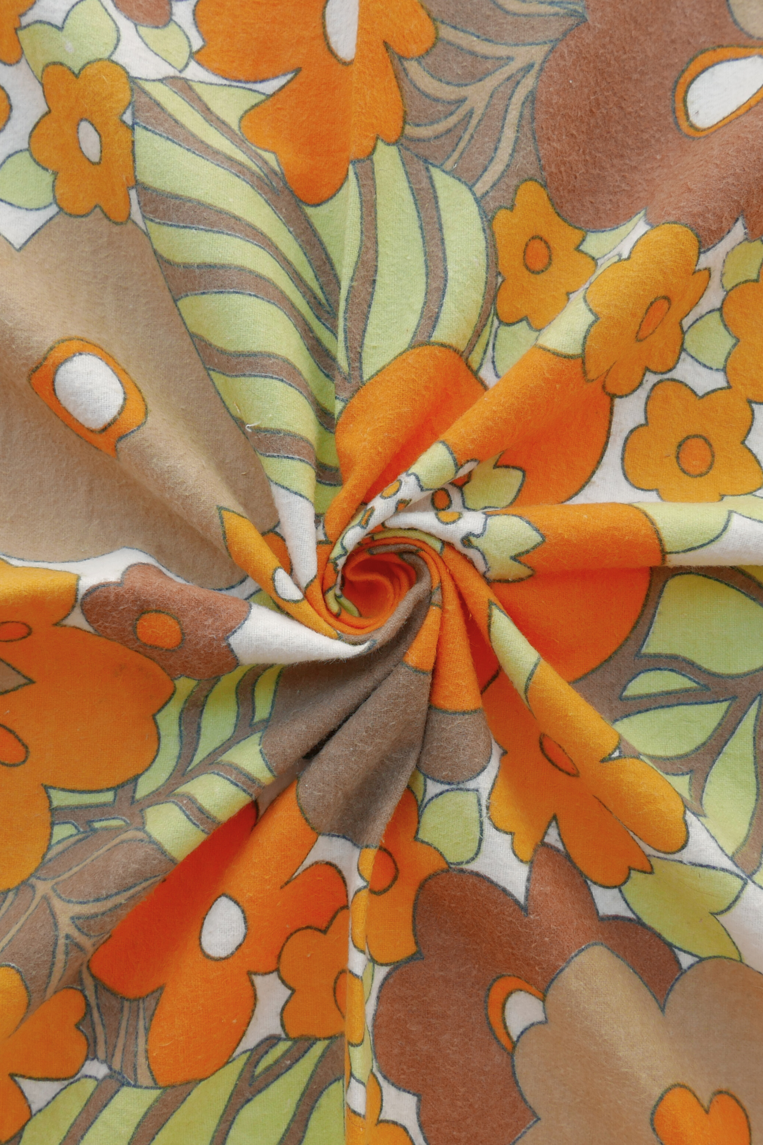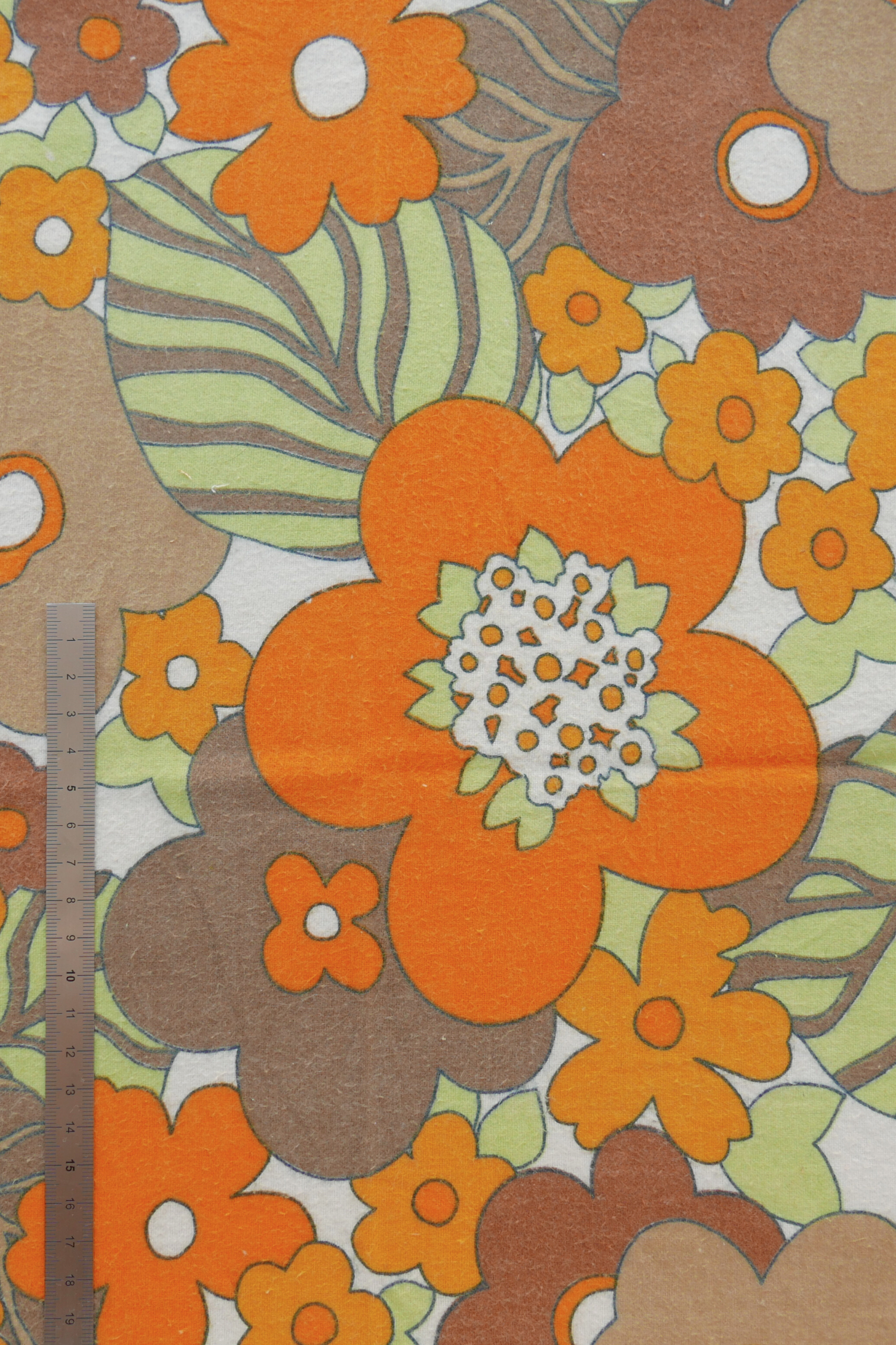 Tissu - Polyester - Flannel - Fond blanc avec des fleurs aux teintes orange, marron et jaune - 61 * 59 cm