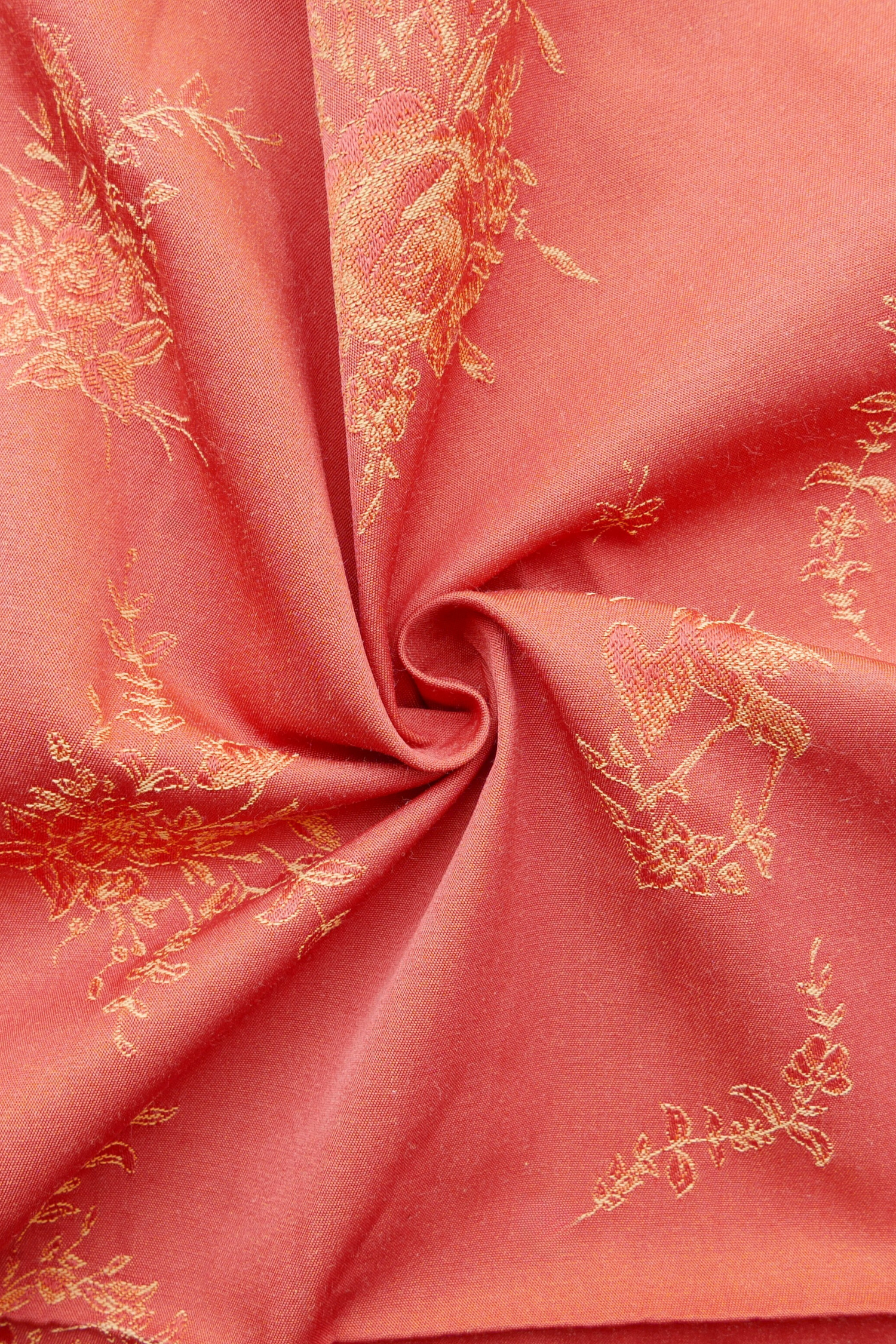 Tissu - Rouge avec des arabesques dorés, taupes et roses - 61 cm * 79 cm