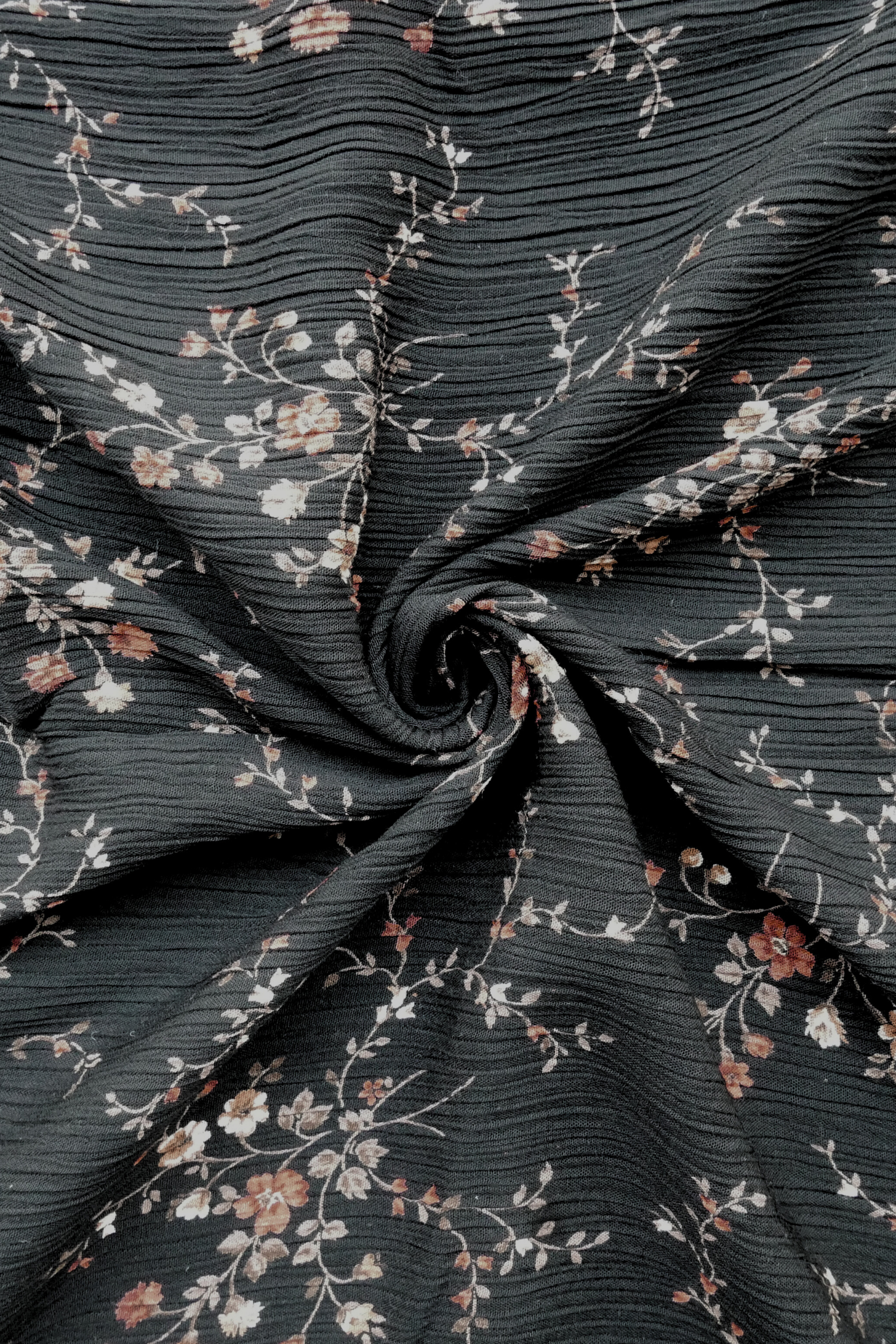 Tissu - Polyester - Tissu plissé - Fond noir avec des fleurs jaunes et rouges - 135 * 205 cm