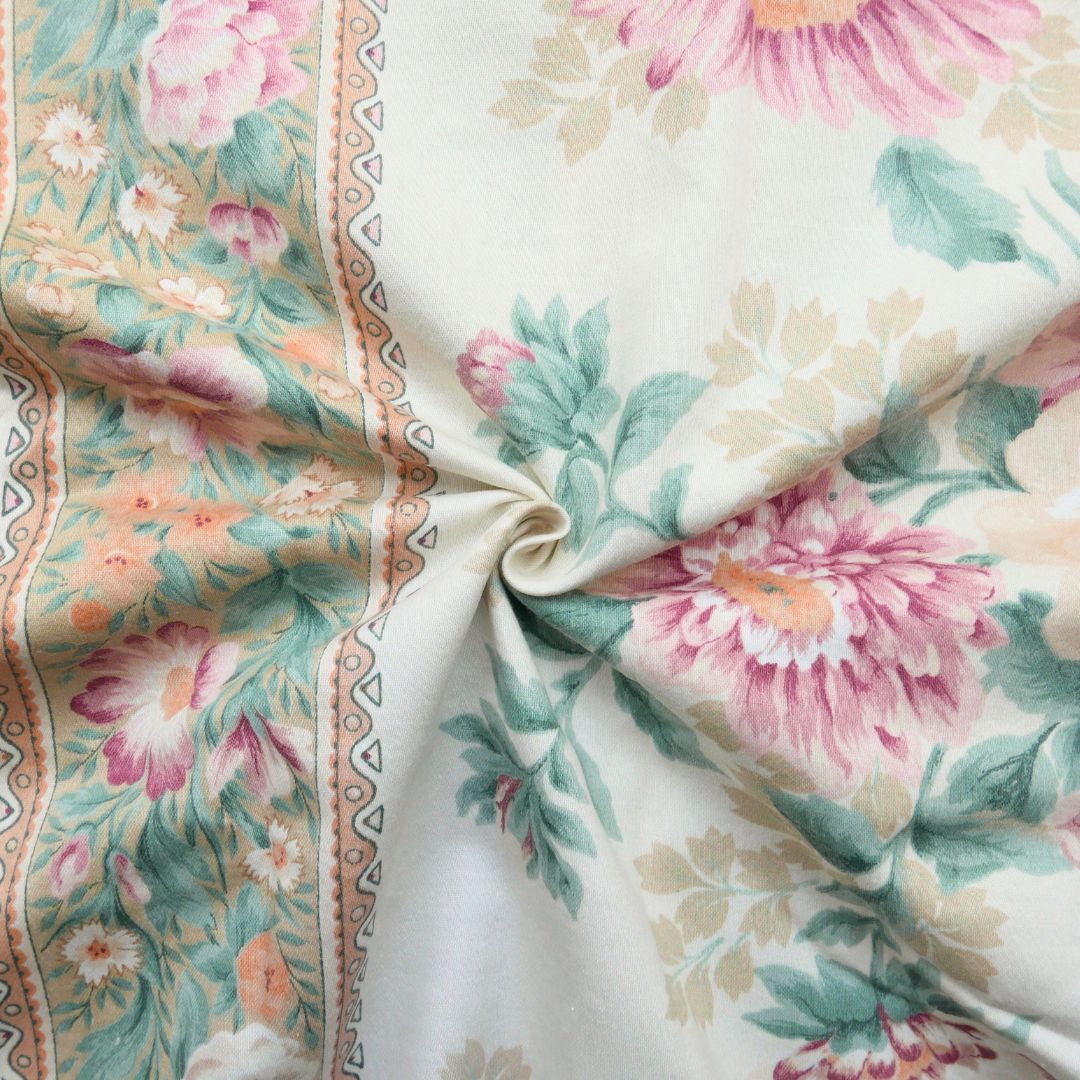 Fabric - Cotton - Ecru with pink and beige flowers - 75 cm * 145 cm