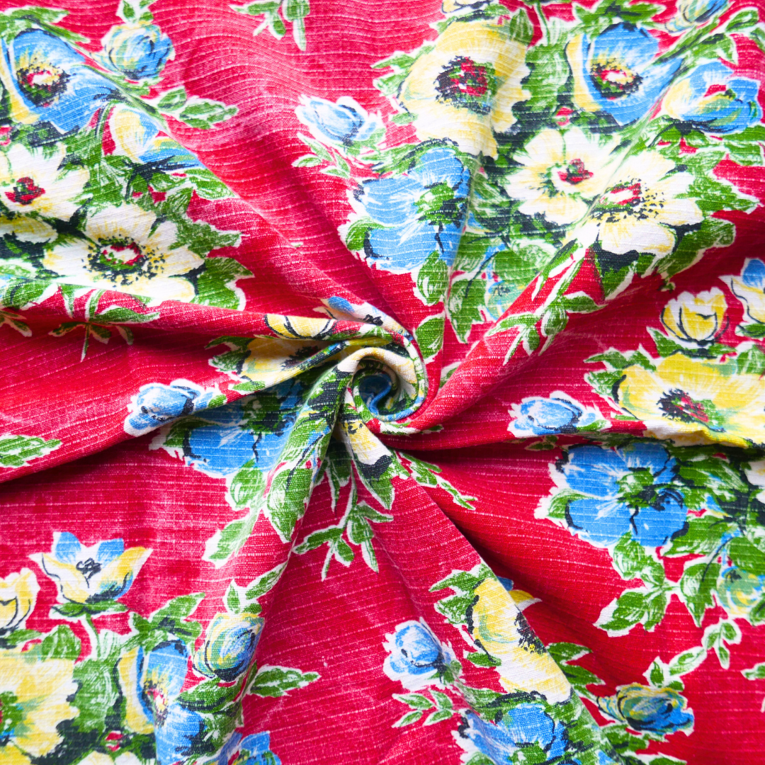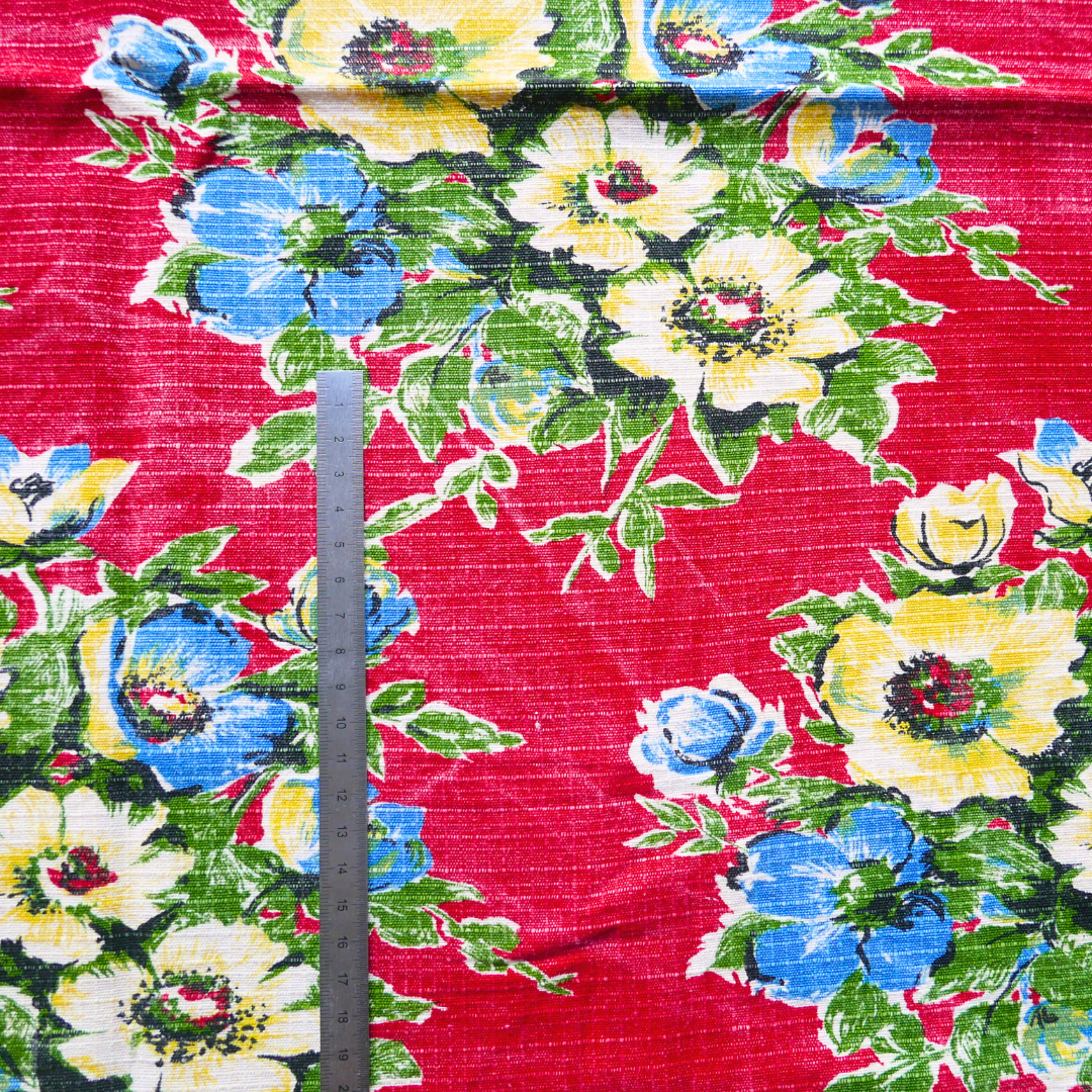 Fabric - Cotton - Red with yellow and blue flowers - 108 cm * 142 cm
