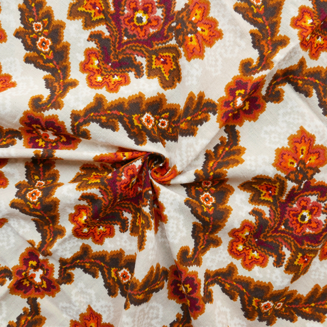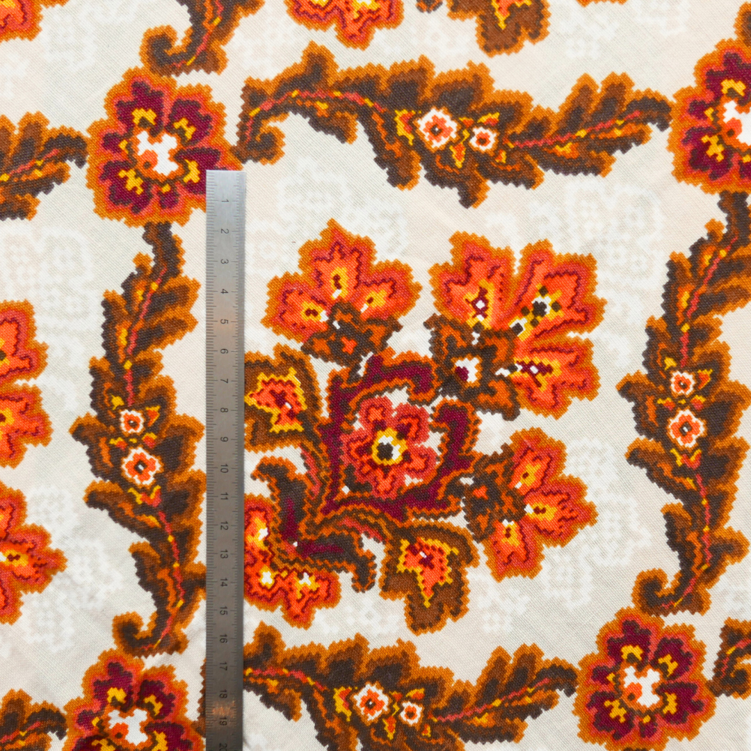Fabric - Cotton - Taupe with orange, yellow and brown flowers - 127 cm * 191 cm