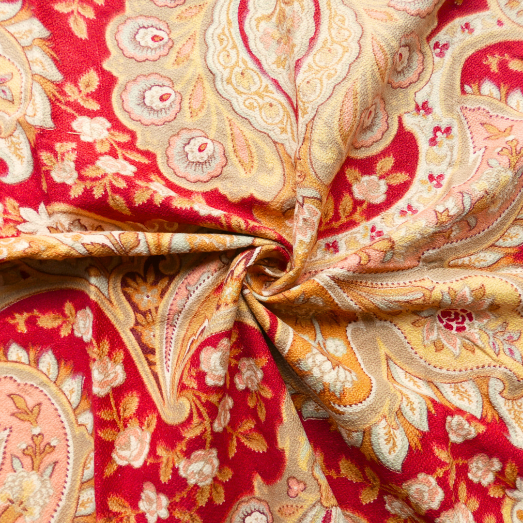 Fabric - Red with gold, taupe and pink arabesques - 61 cm * 79 cm