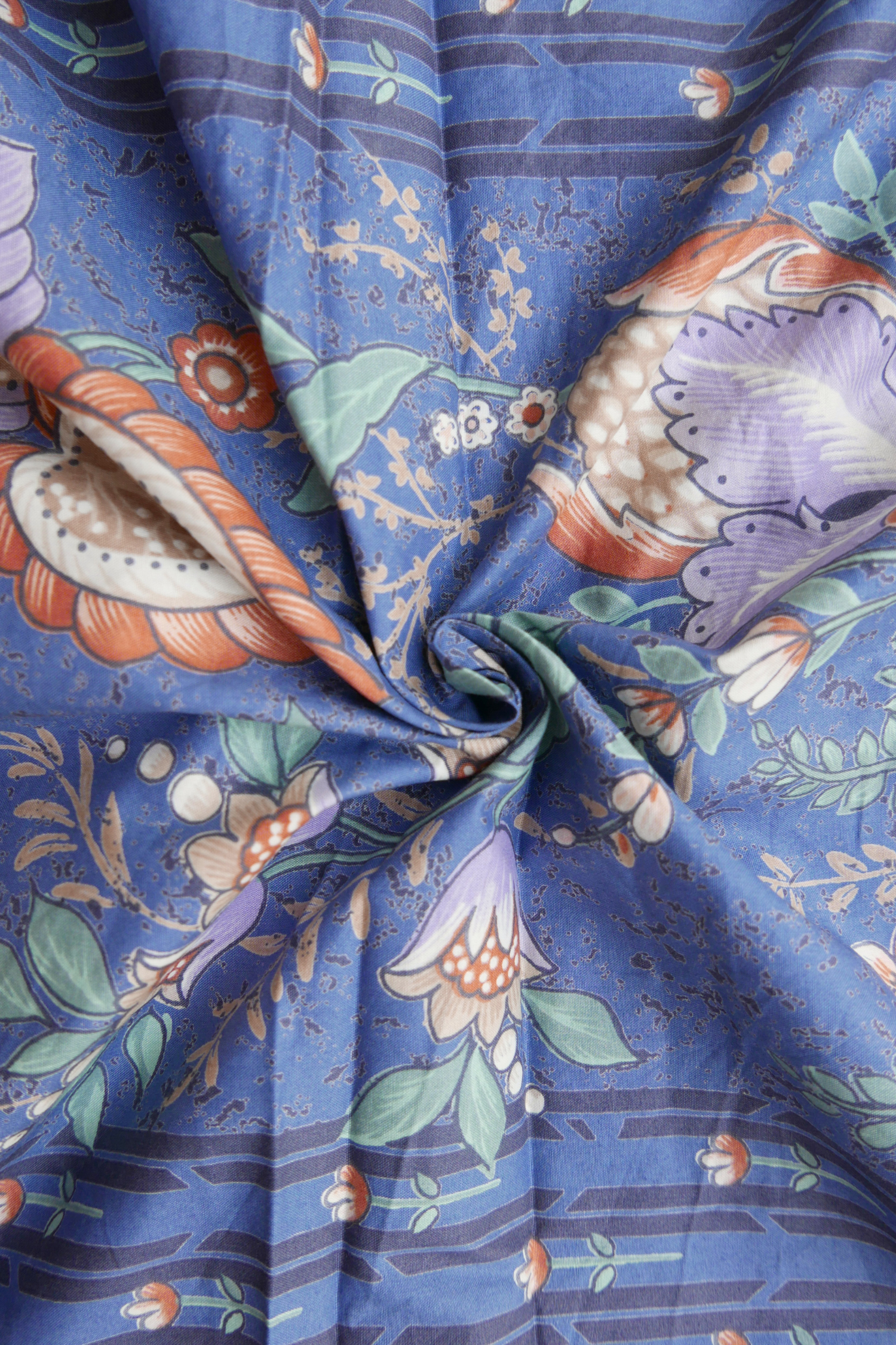 Tissu - Coton - Bleu avec motifs fleuris - 134 cm * 278 cm