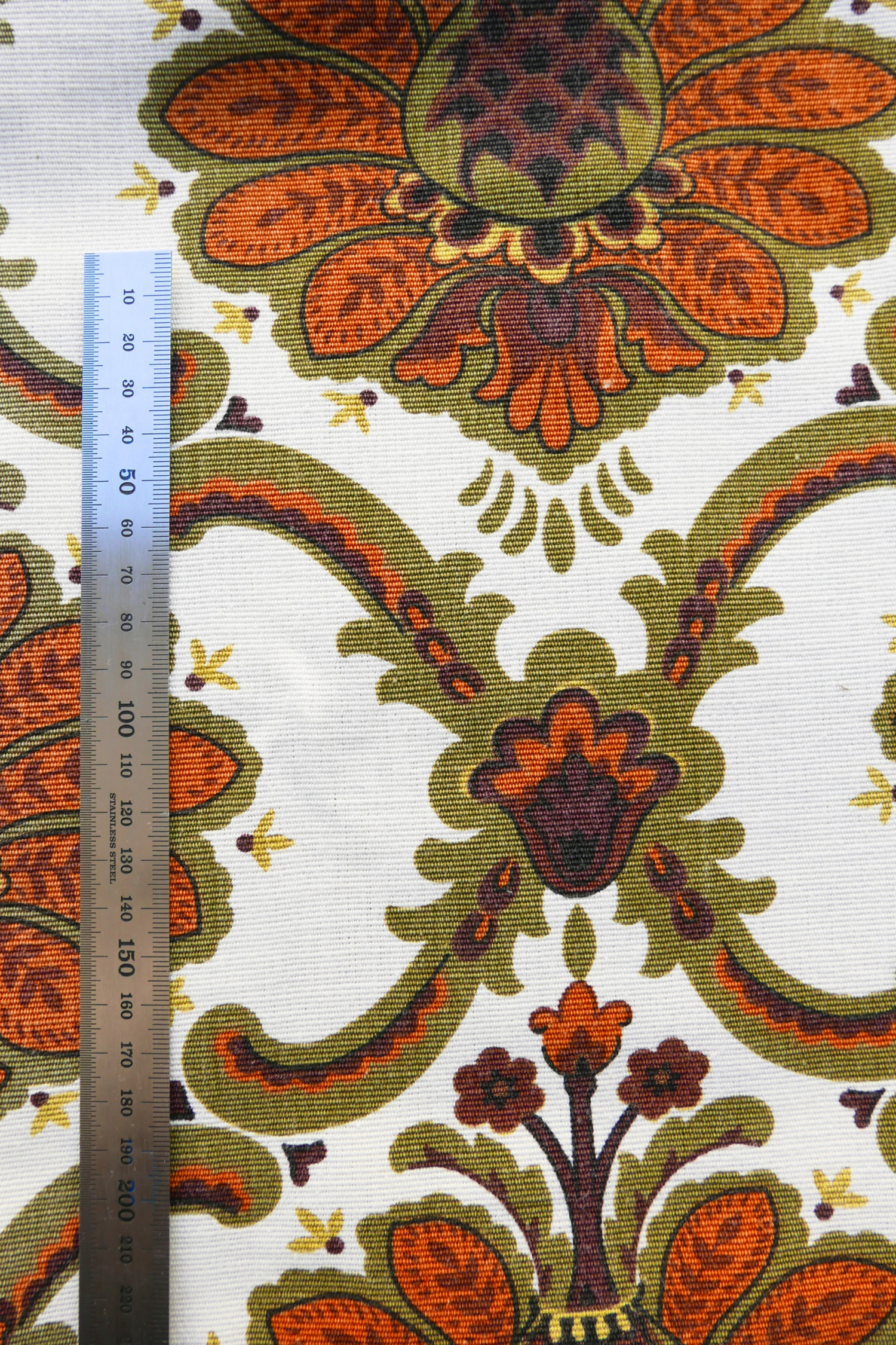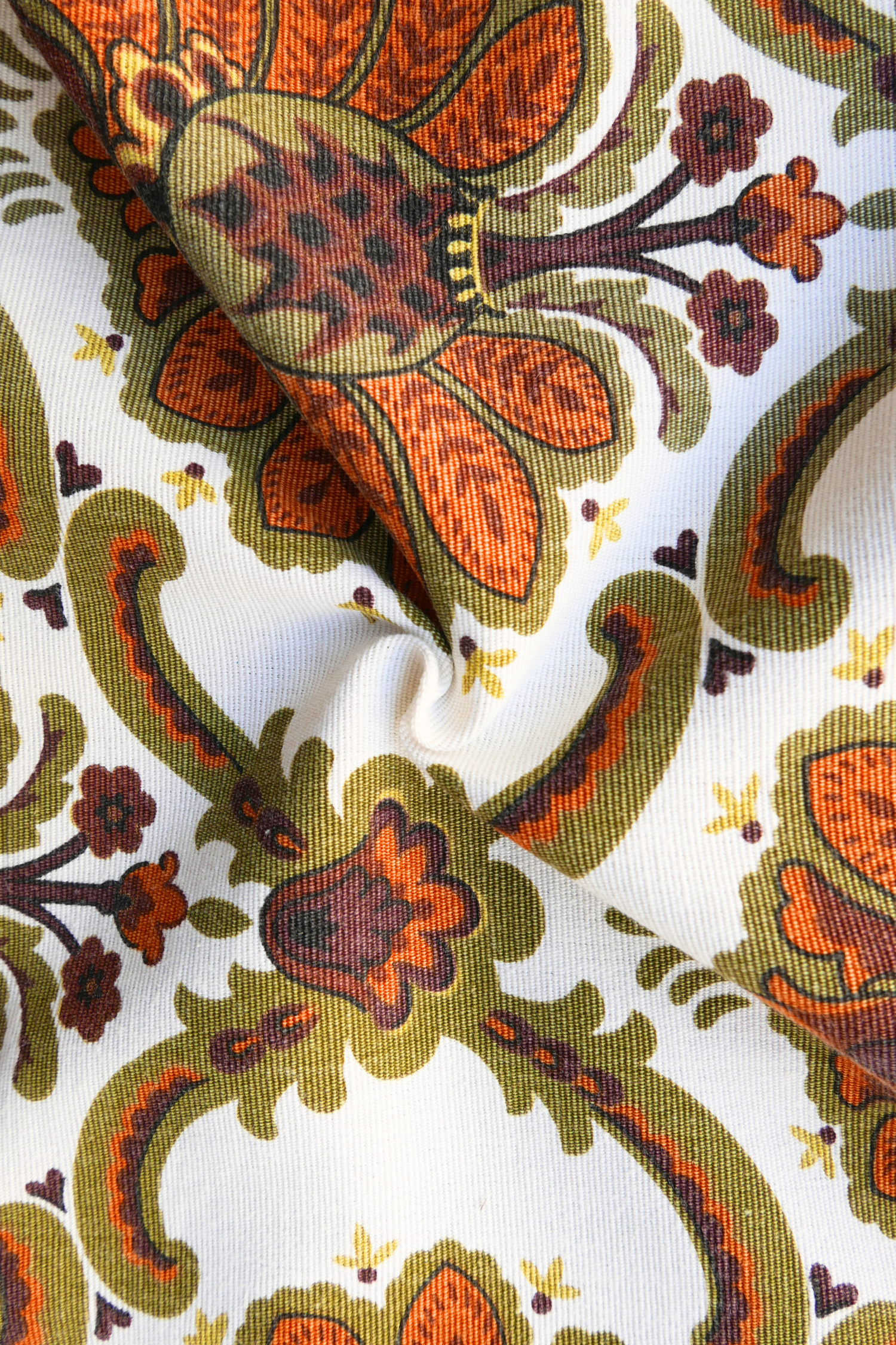 Tissu - Coton - Fond blanc avec des arabesques vertes et marron - 115 cm * 224 cm