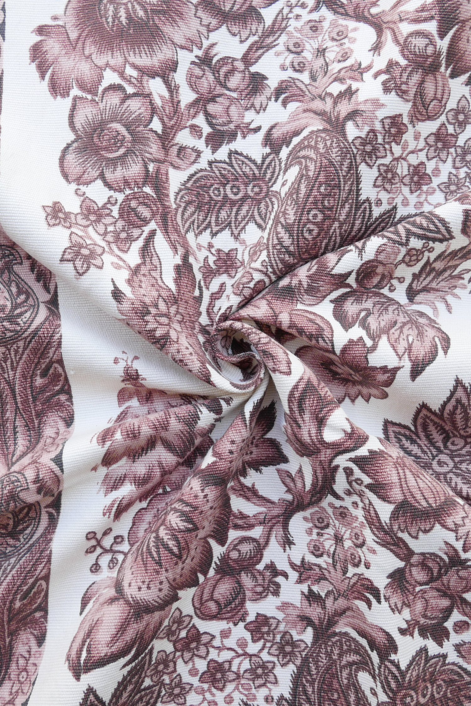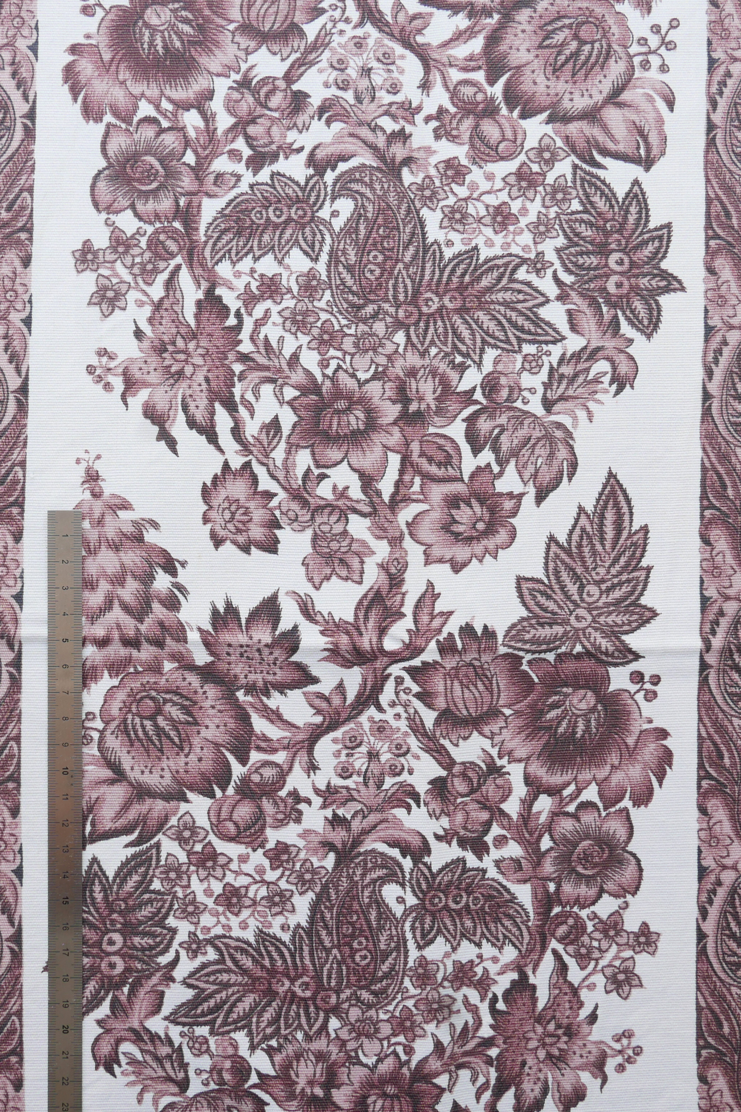 Fabric - Cotton - White background with brown floral prints Inscription: "Romanex de Boussac" Large-dye furniture - 98 * 150 cm