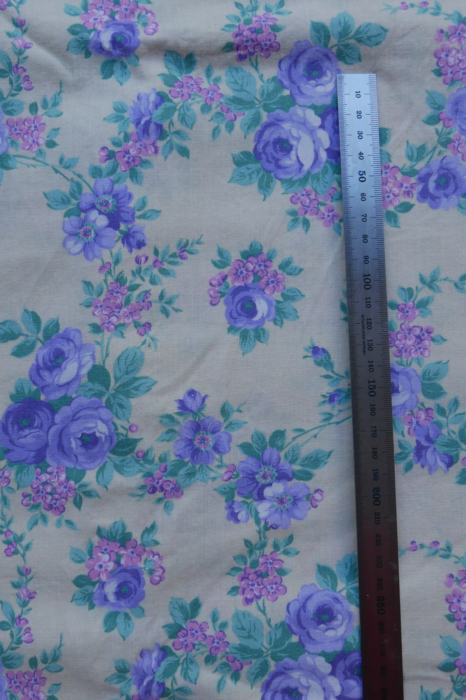 Tissu - Coton - Jaune avec fleurs violettes et rose - 142,5 cm * 225 cm