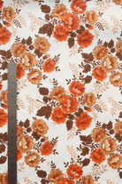 Tissu - Coton - Fond beige avec des fleurs aux teintes orangées et marron - 86 cm * 194 cm