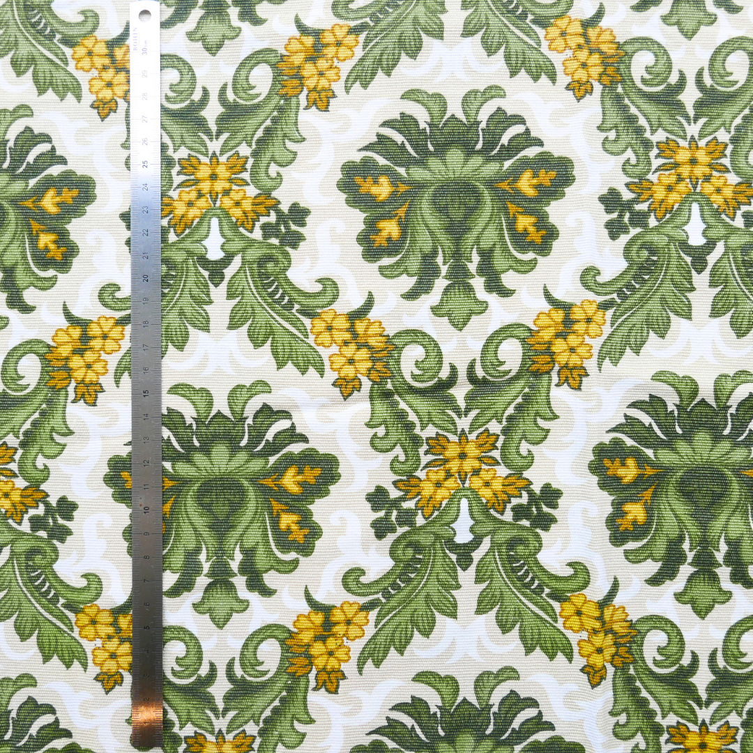 5 reviewsFabric - Cotton - Green and yellow arabesques - 40 cm * 120 cm
