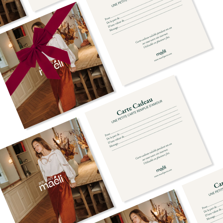 The Maéli gift card is a 100% digital card with the value of your choice. After placing your order, you will receive the e-gift card directly in your email inbox.
