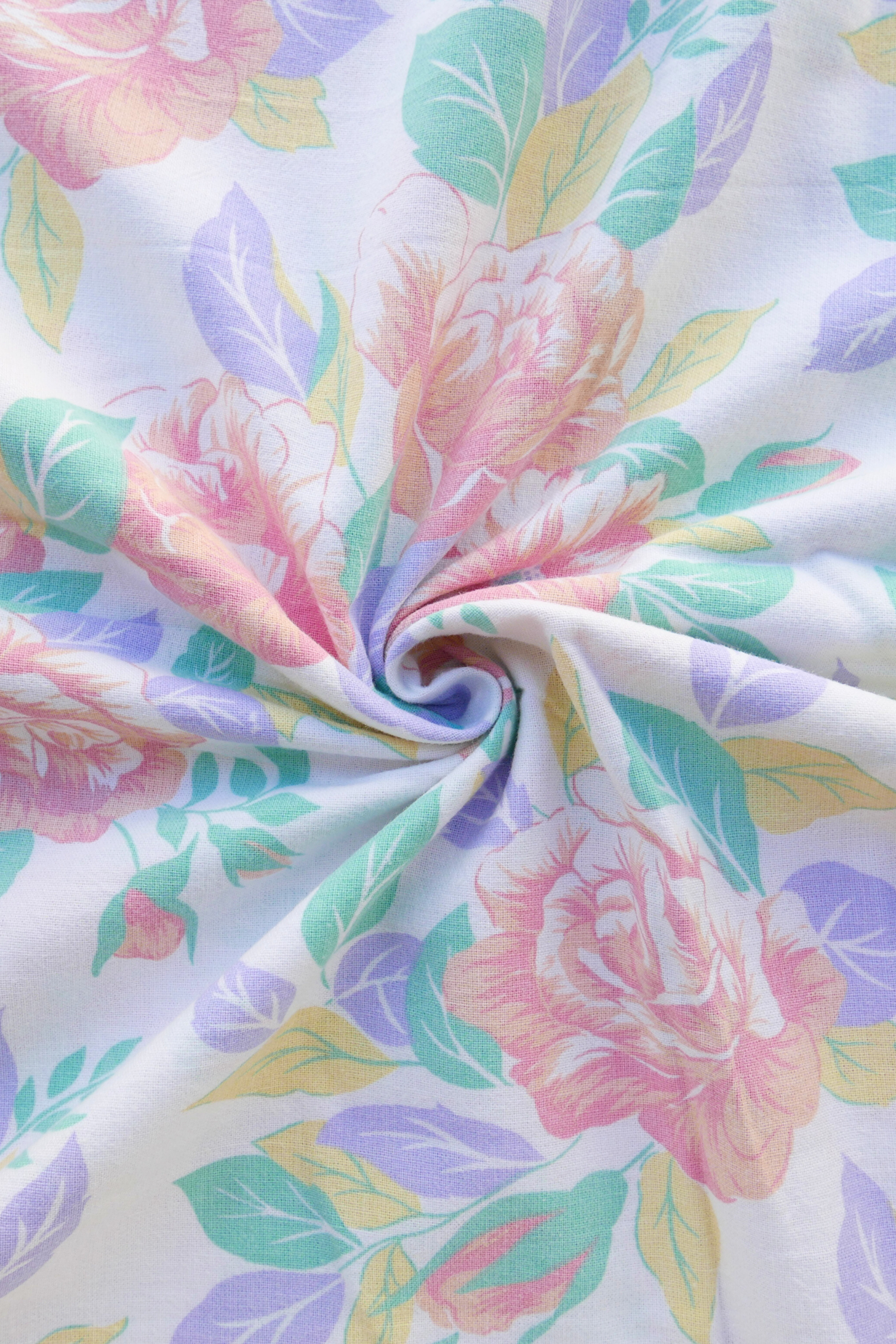 Fabric - Cotton - White background with flowers in shades of pink, purple, green and yellow - 31 * 116 cm