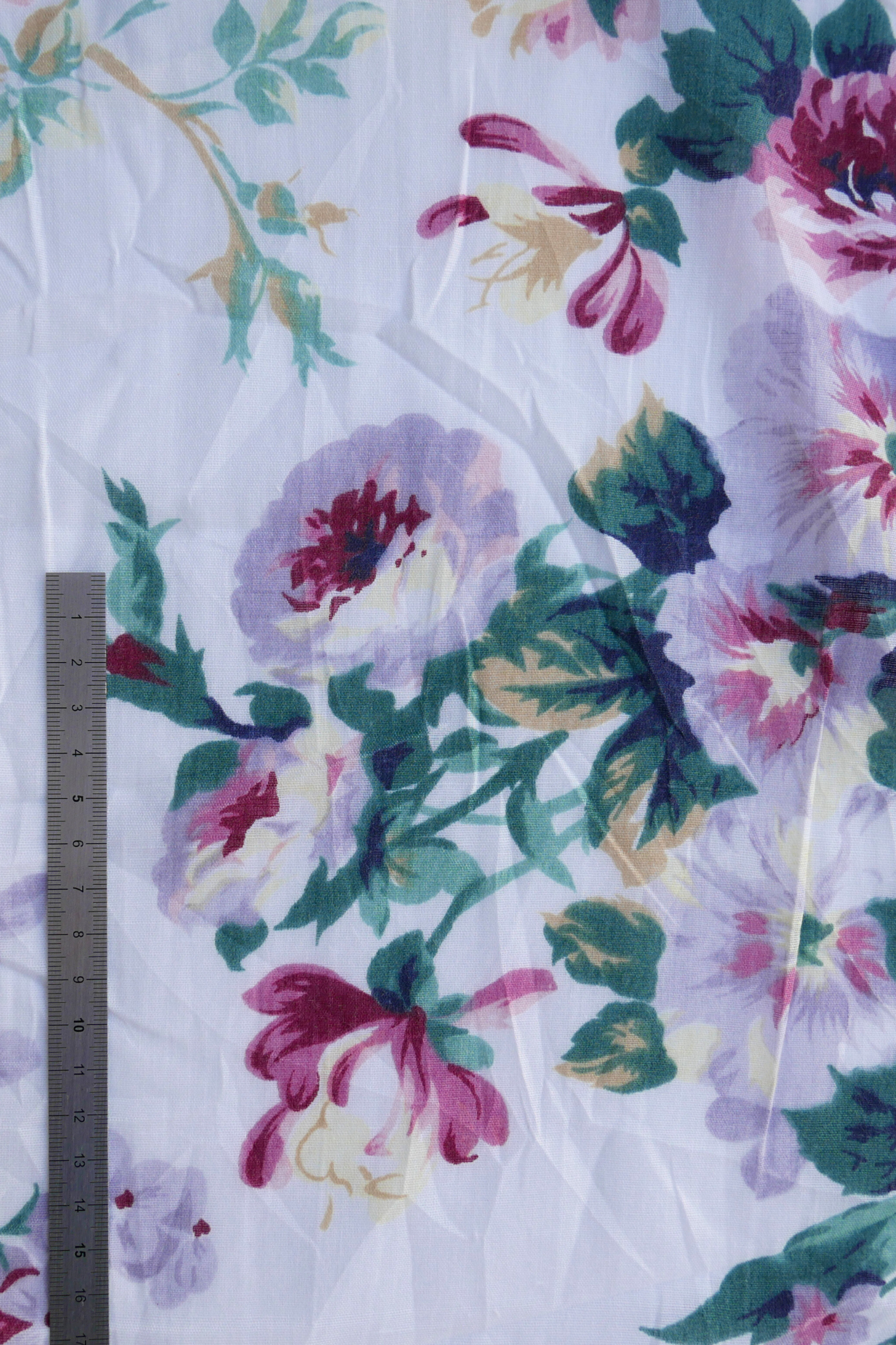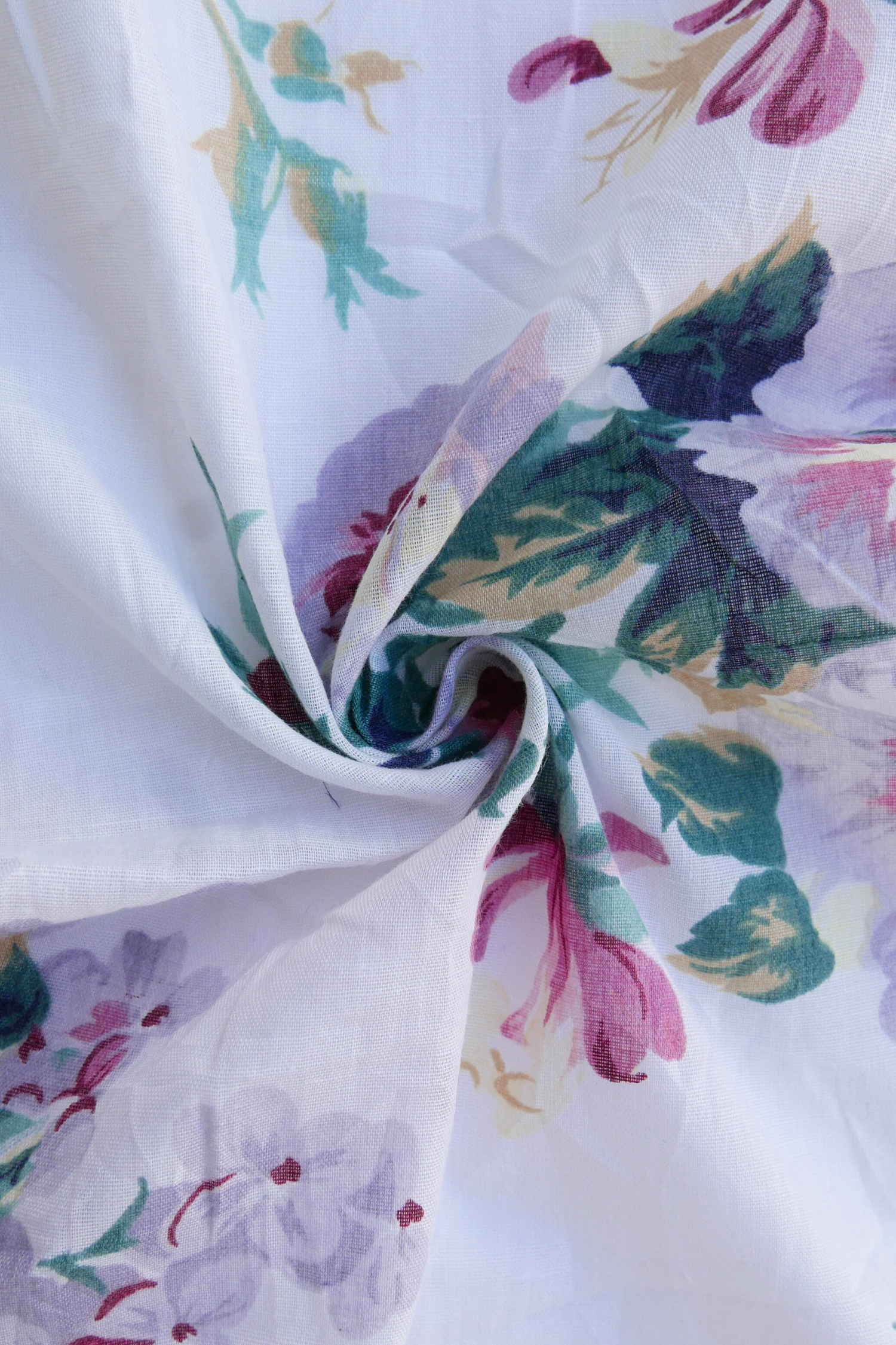 Fabric - Polyester - Voile - White background with flowers in shades of pink, beige and grey - 26 * 680 cm