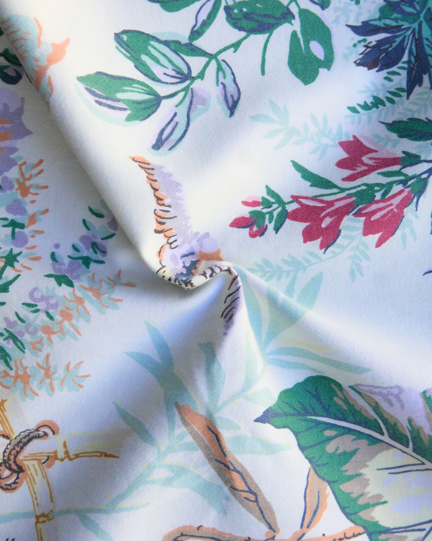 Un drap de palace, d’une qualité exceptionnelle, réinventé en coupon grâce à notre imprimé fleuri vintage. Nous avons imaginé un tissu 100 % upcyclé pour vous permettre de réaliser vos plus beaux projets couture.