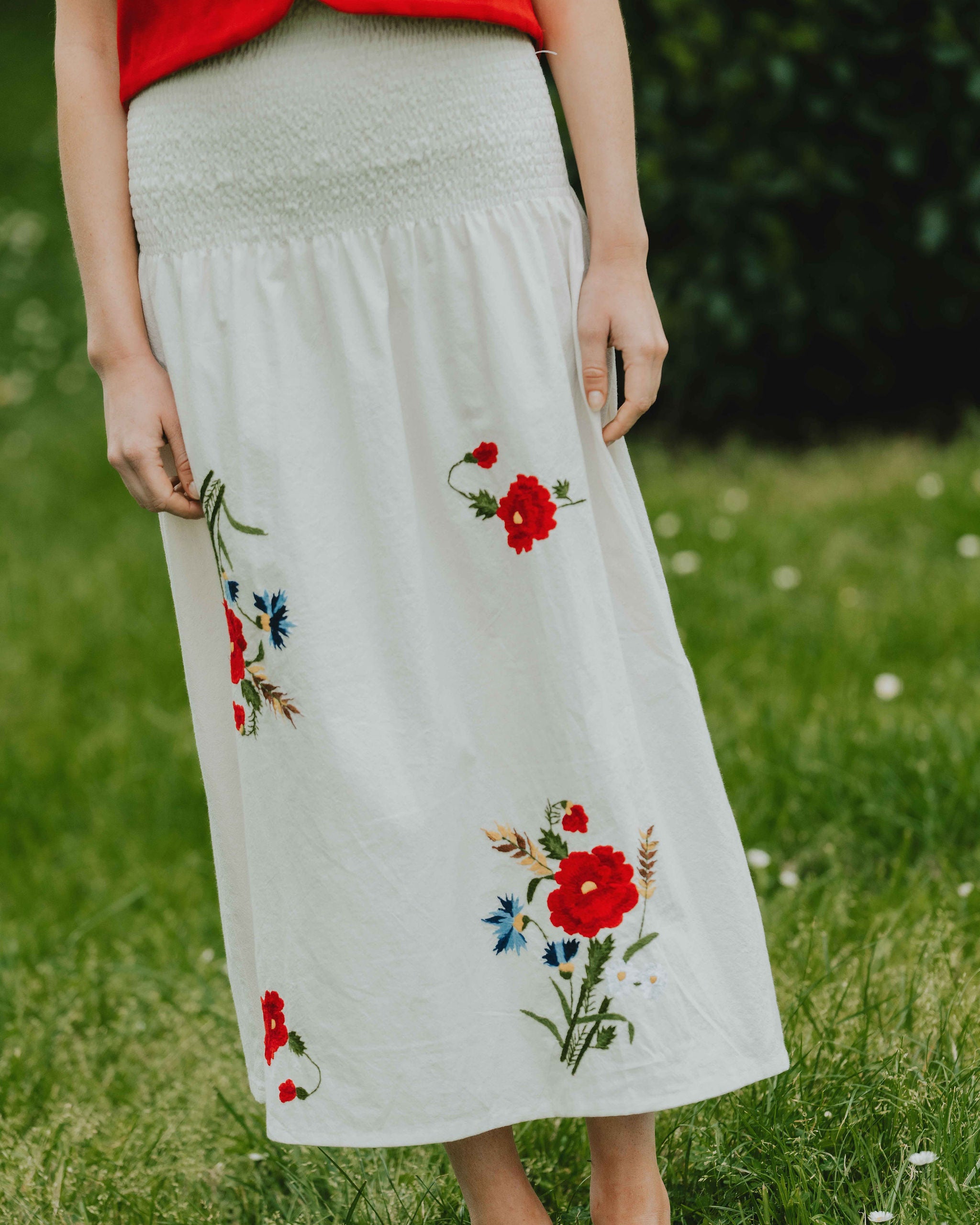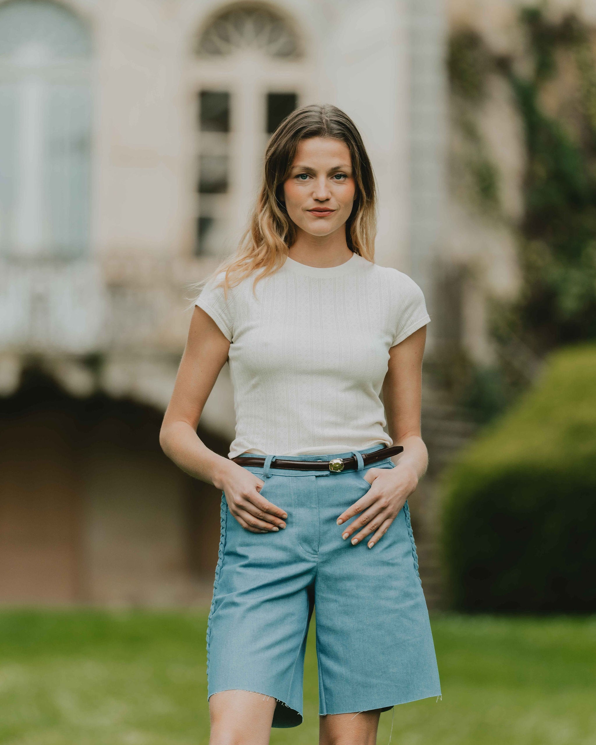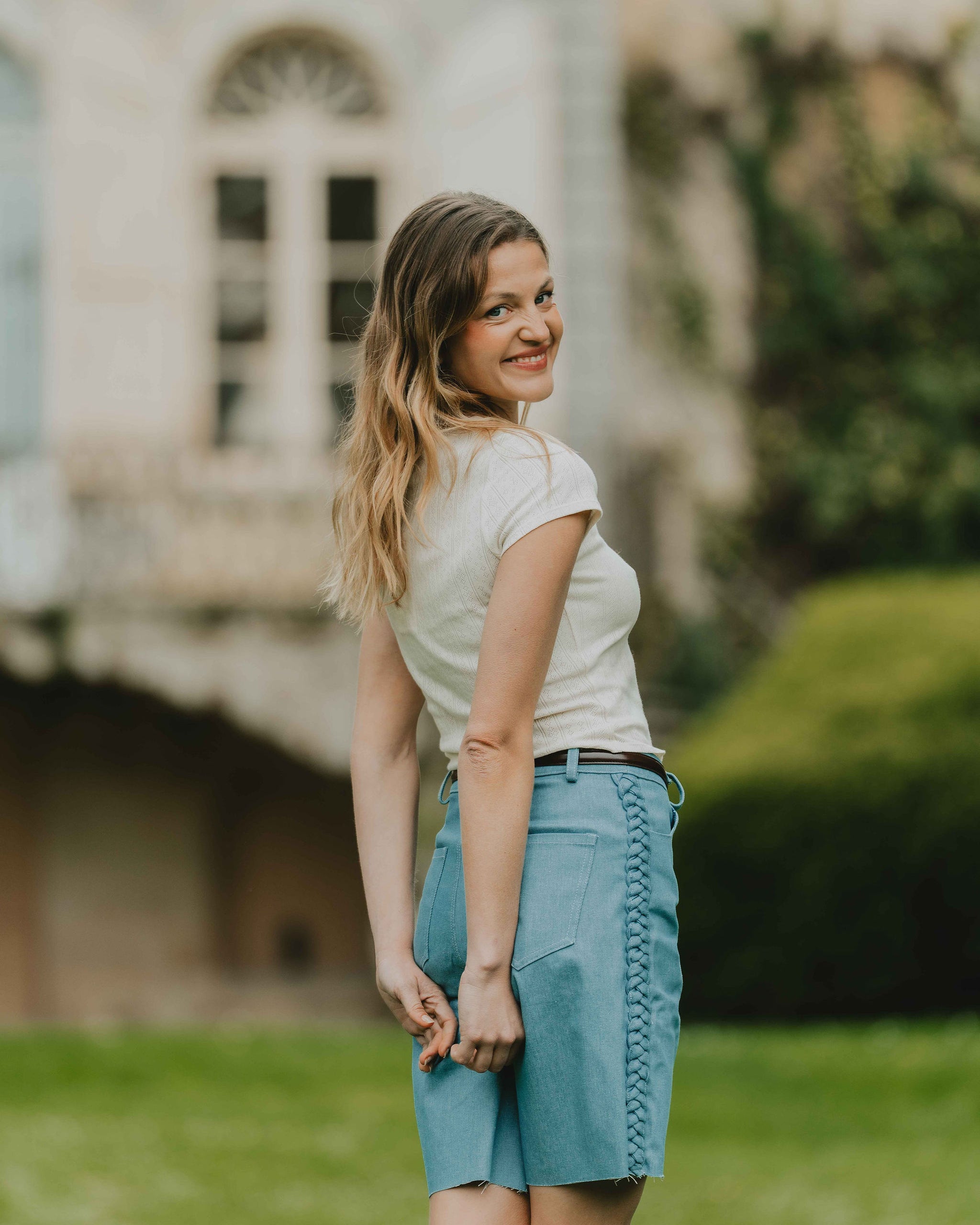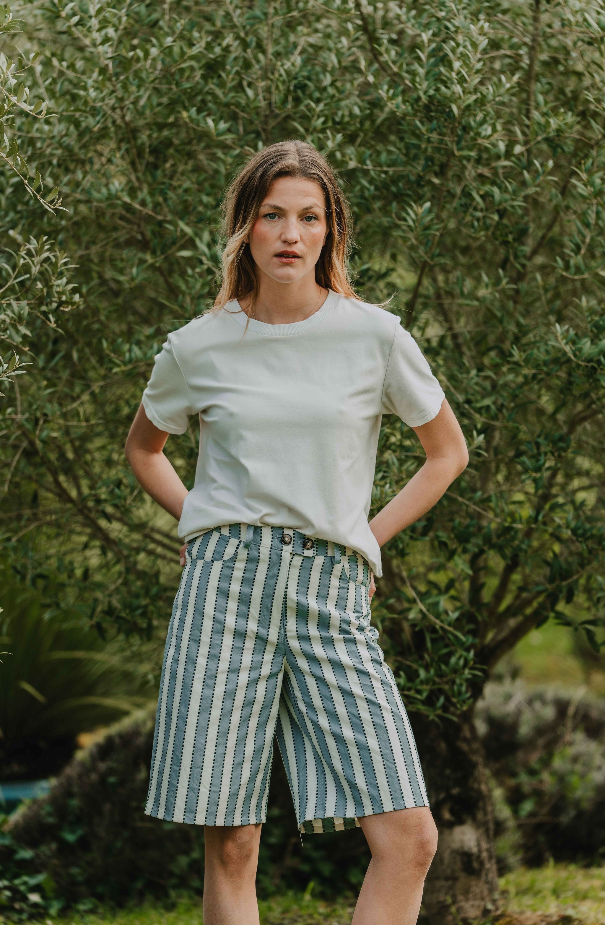 Elle se décline en chemisette à nouer ou à boutonner, ainsi qu'en jupe trapèze.