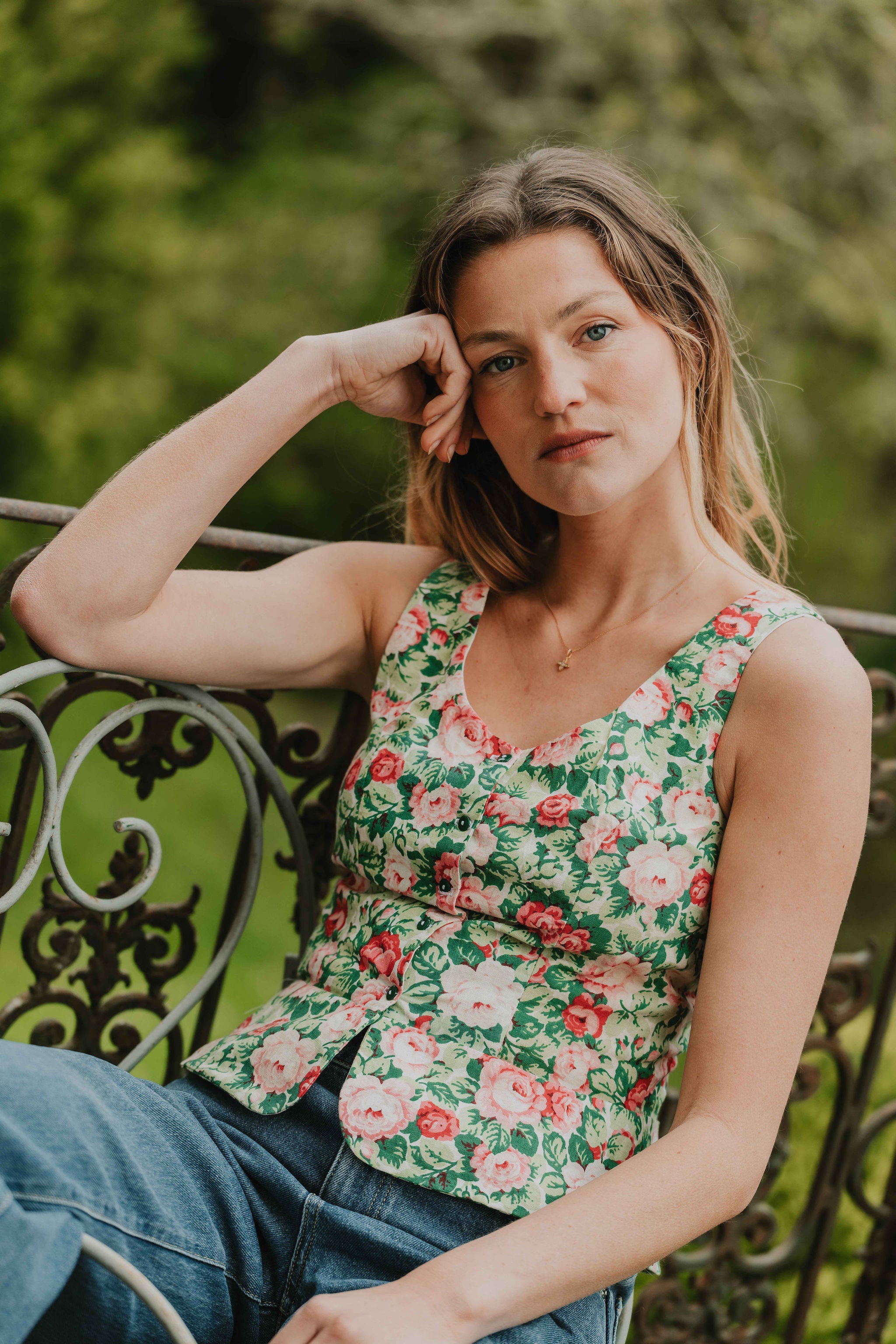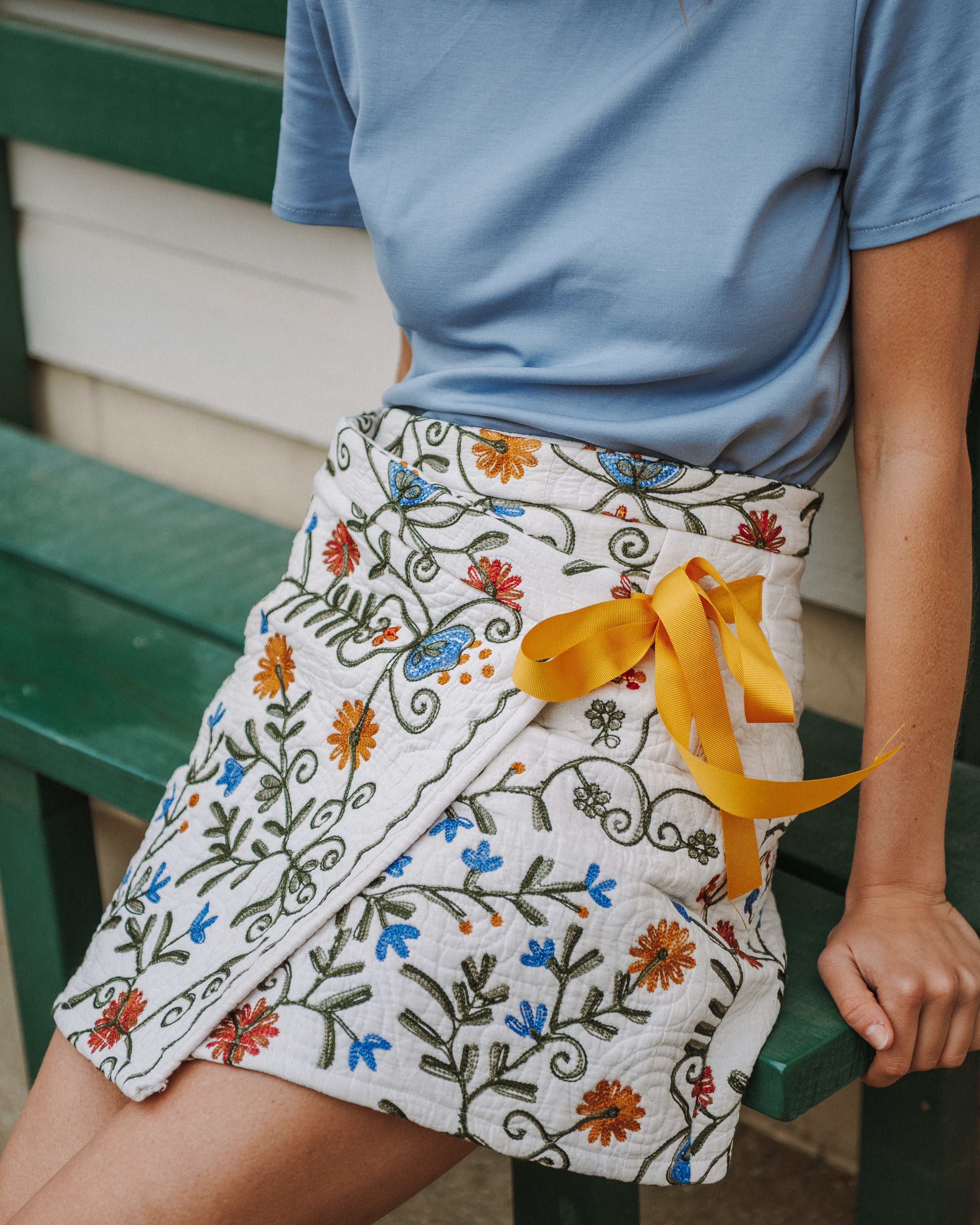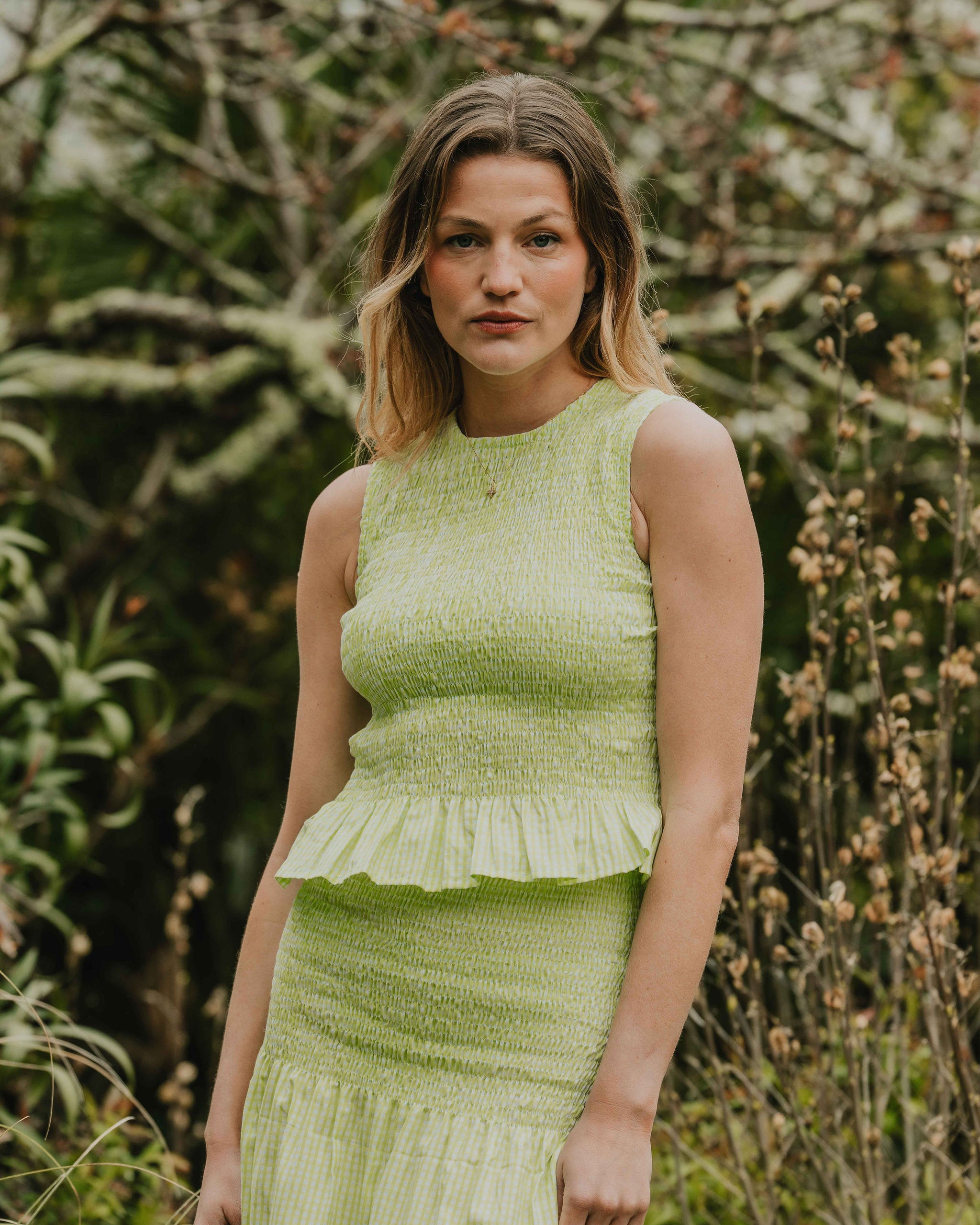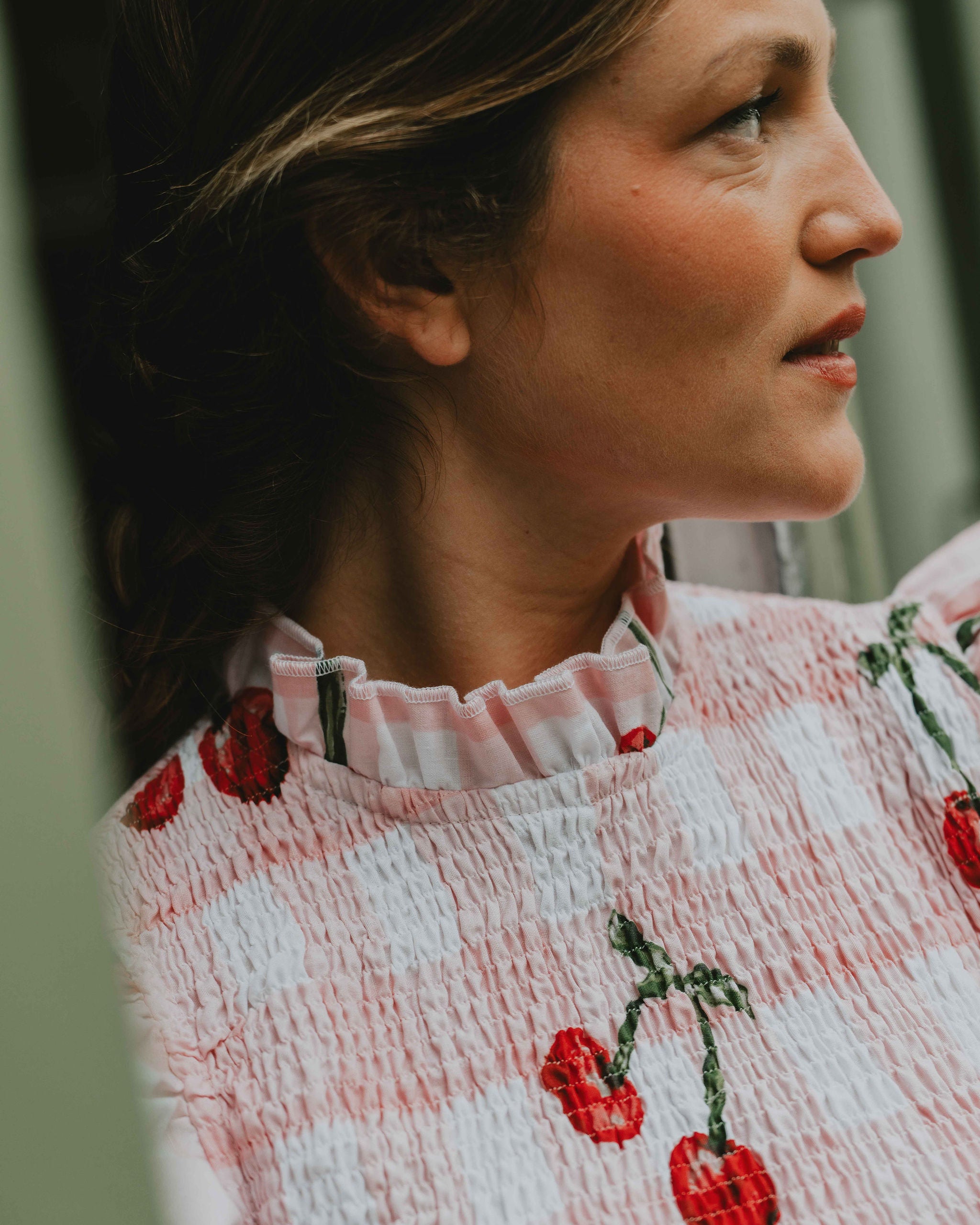 Elle se décline en chemisette à nouer ou à boutonner, ainsi qu'en jupe trapèze.