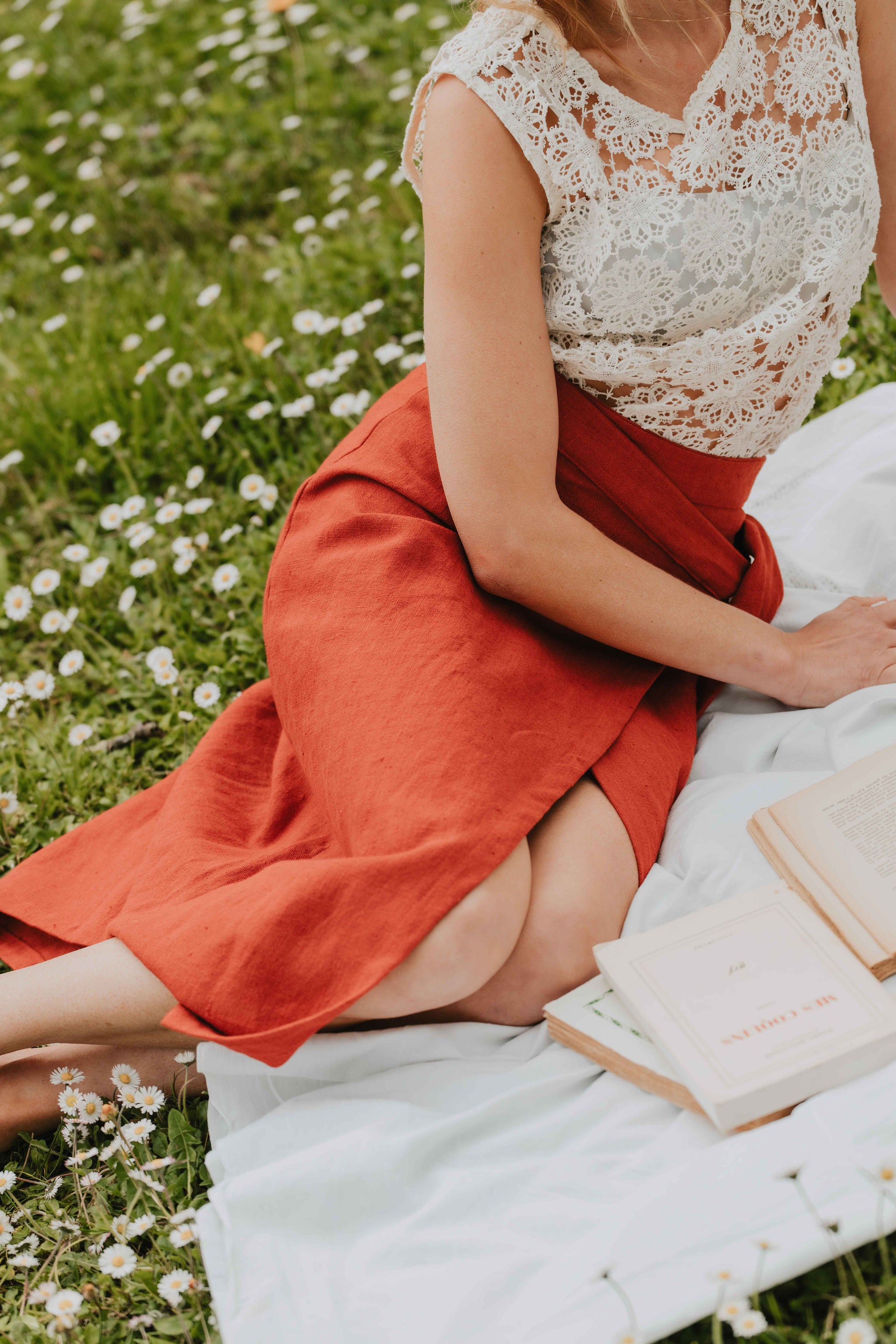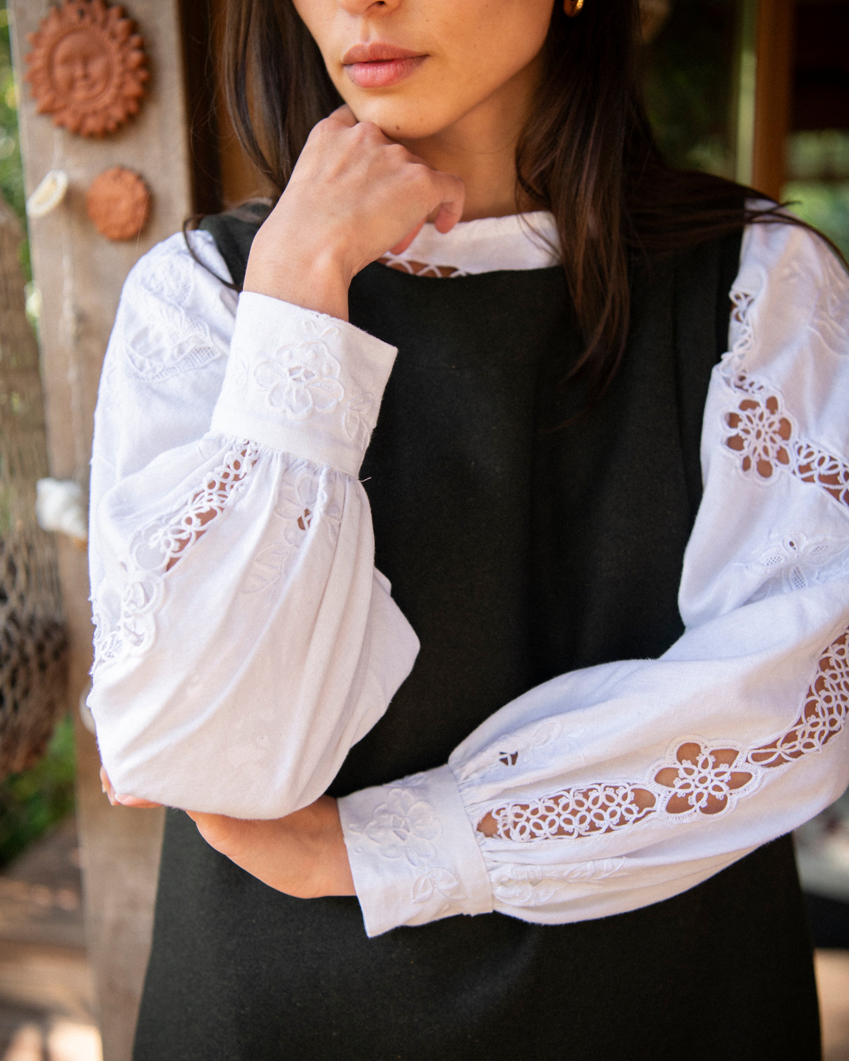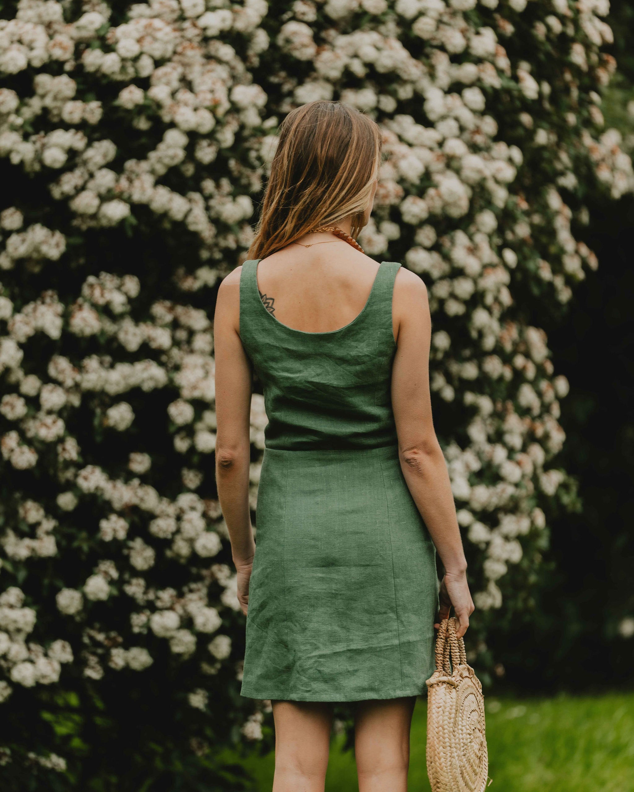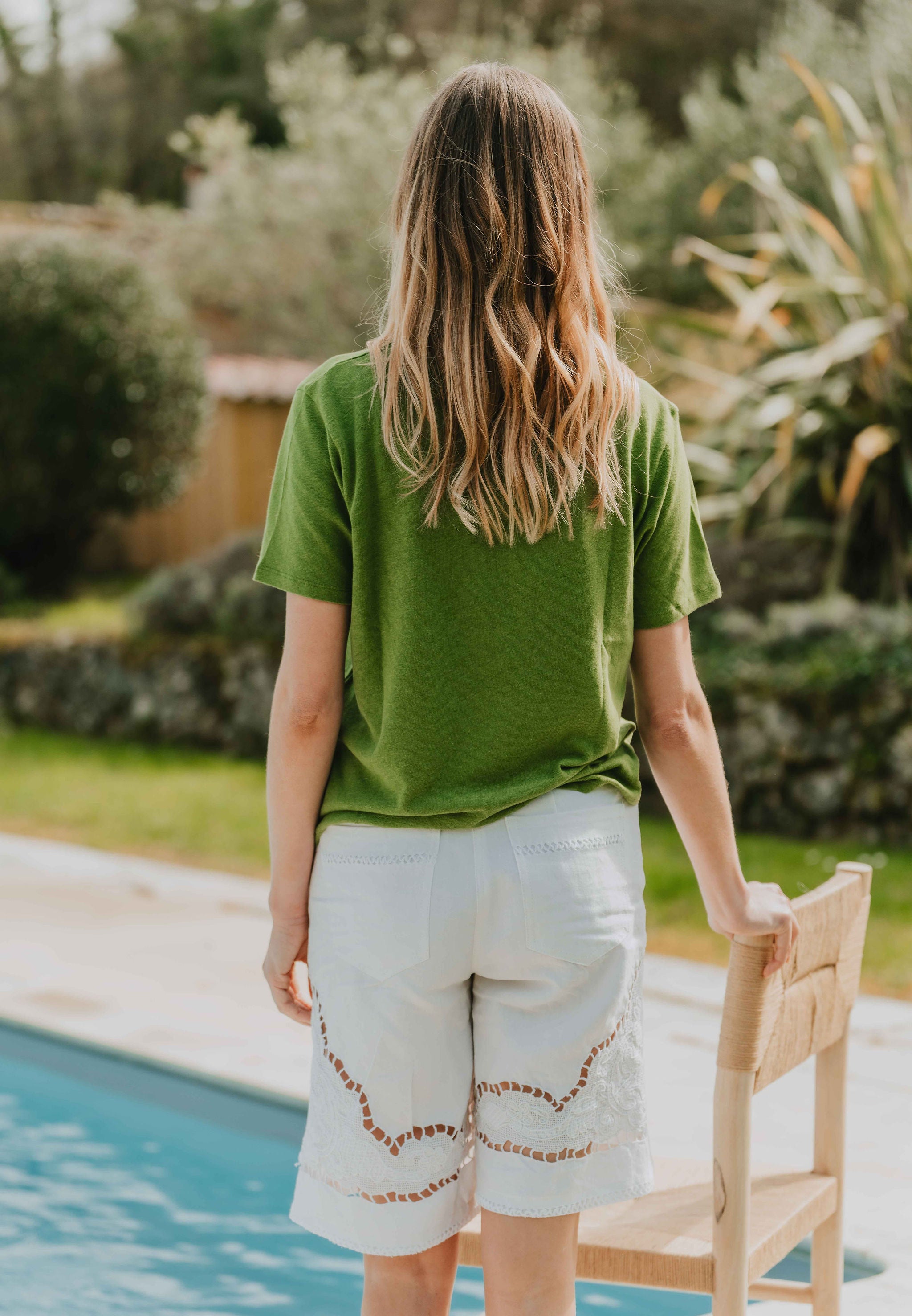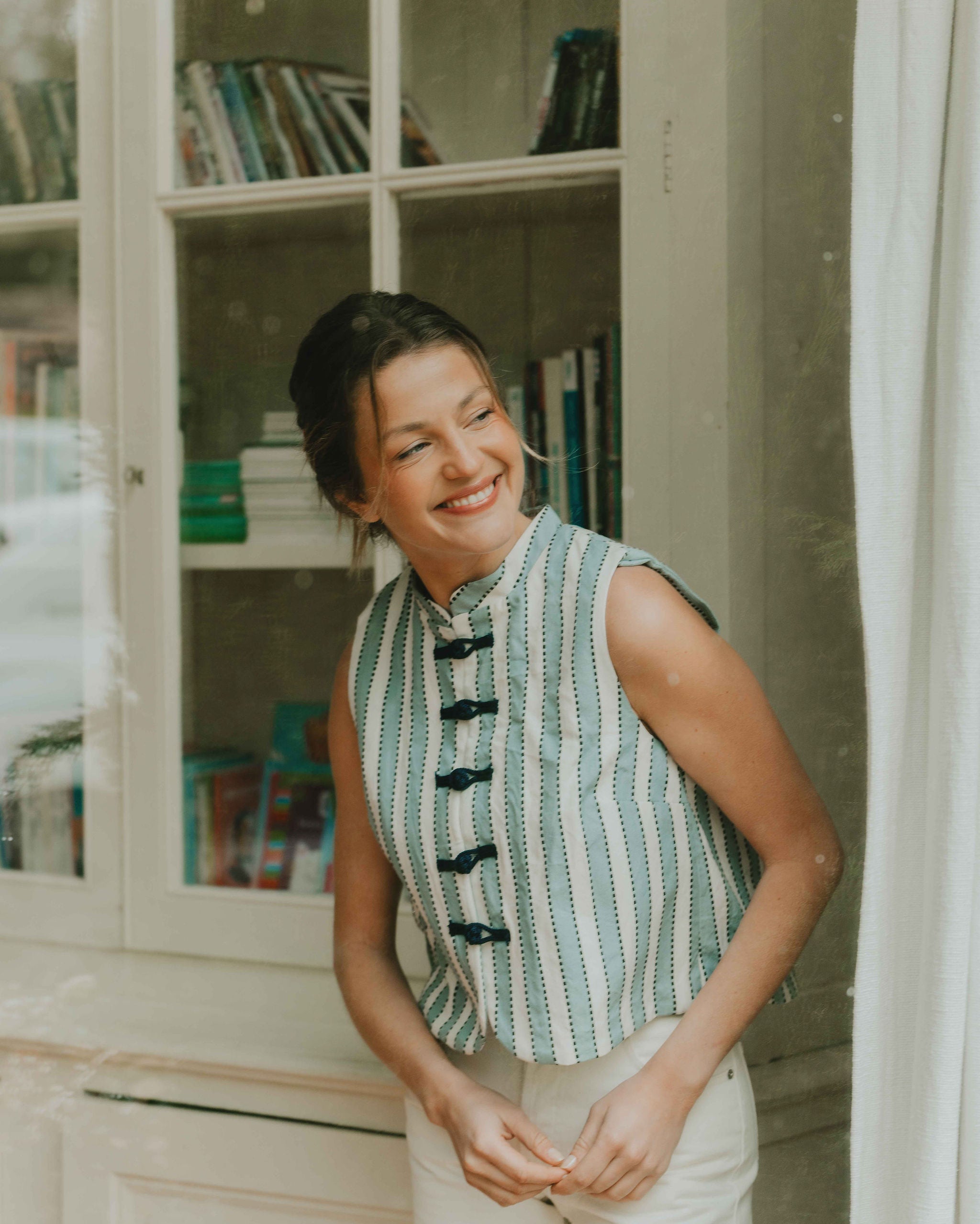 Elle se décline en chemisette à nouer ou à boutonner, ainsi qu'en jupe trapèze.