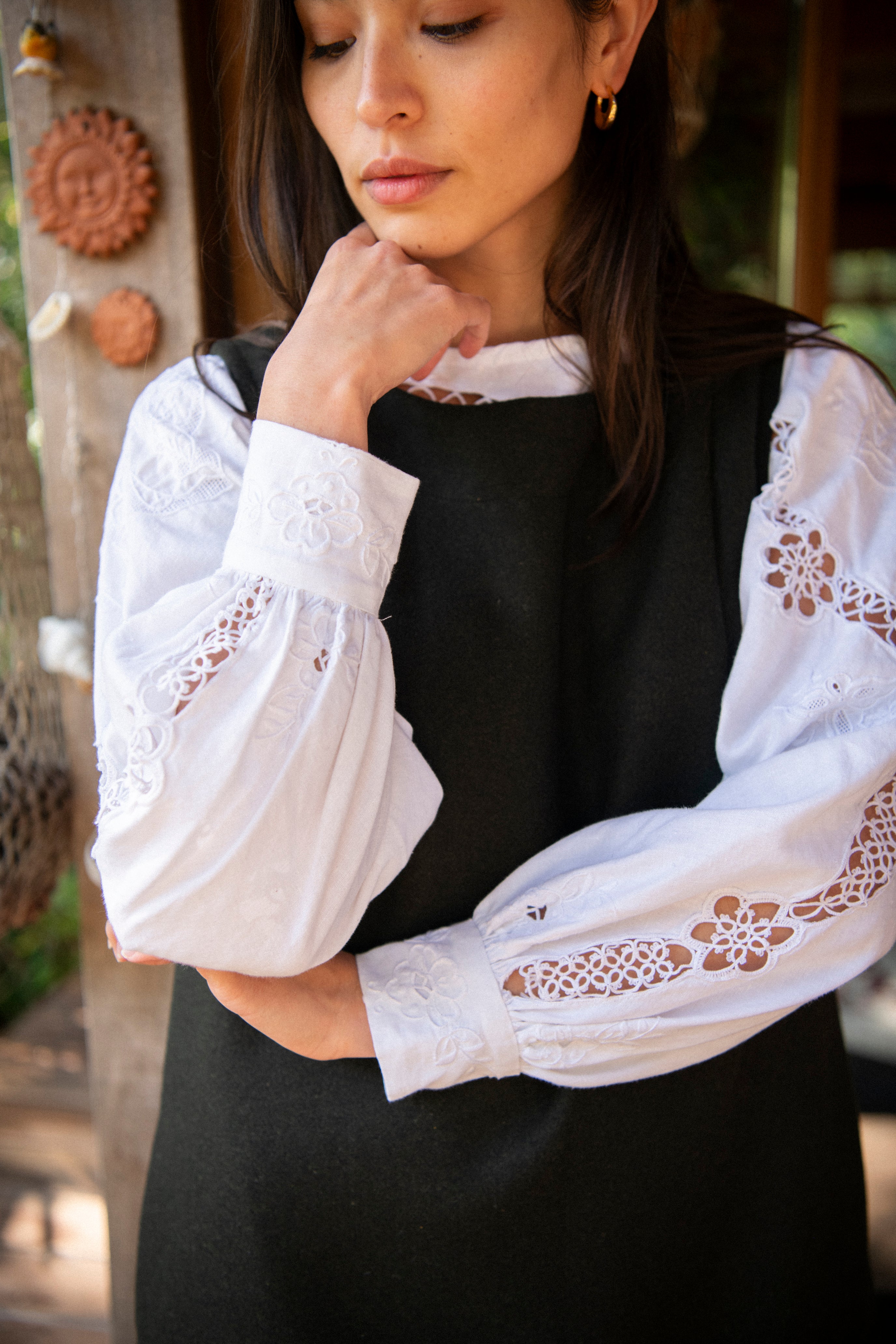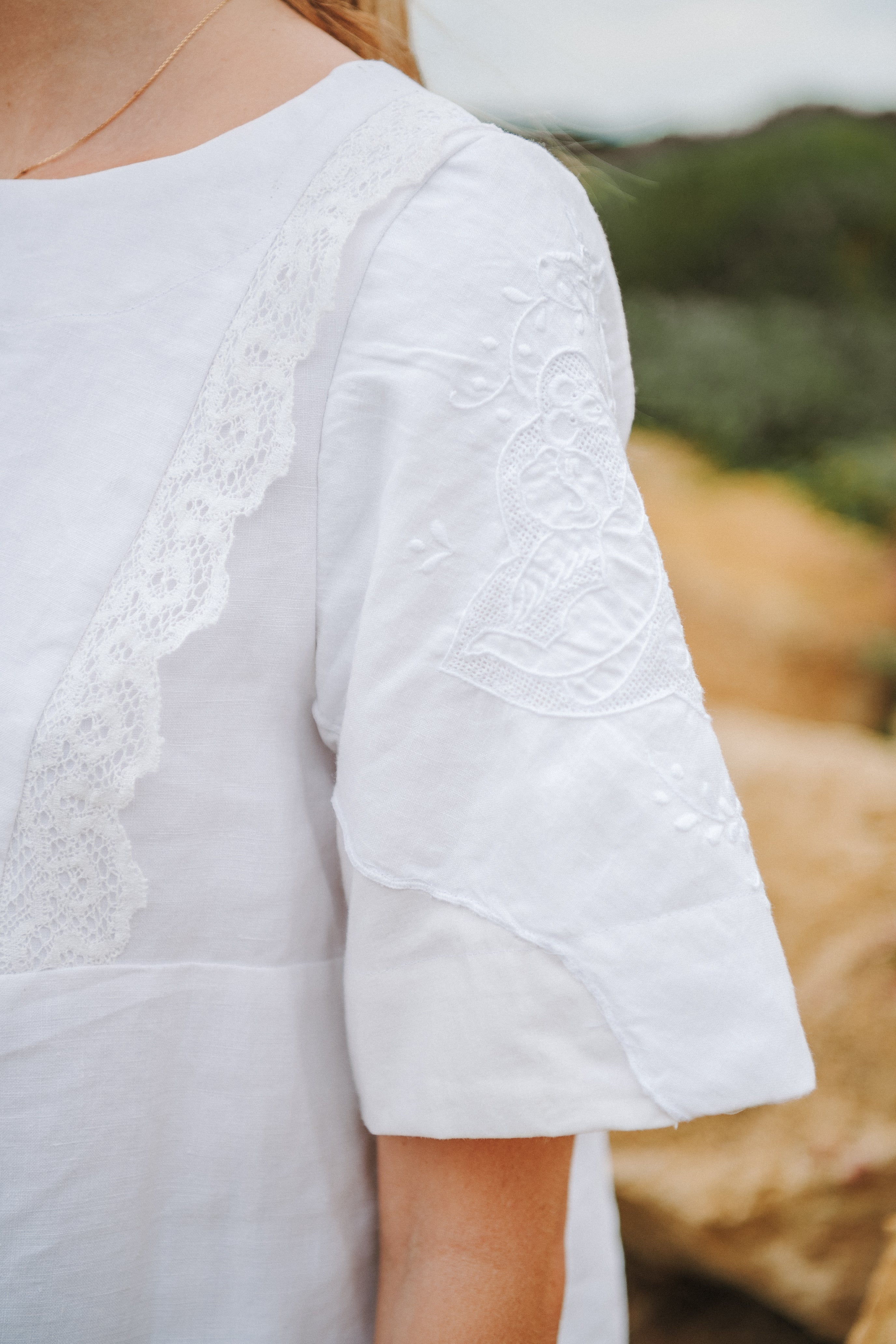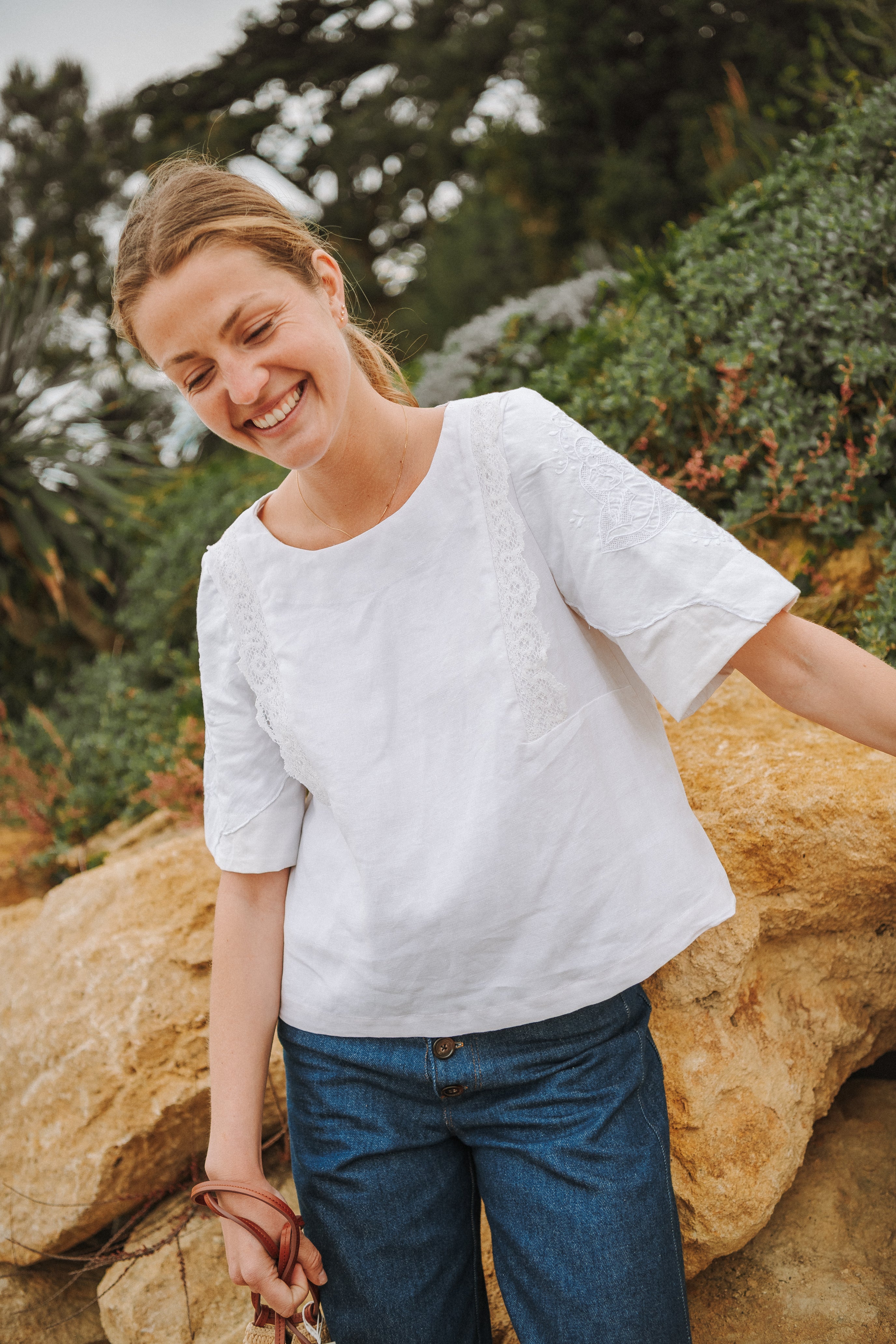 Déclinable en blouse ou en robe, son joli jeu de découpes sur le devant vous permettra de mettre en valeur vos plus belles broderies vintage.