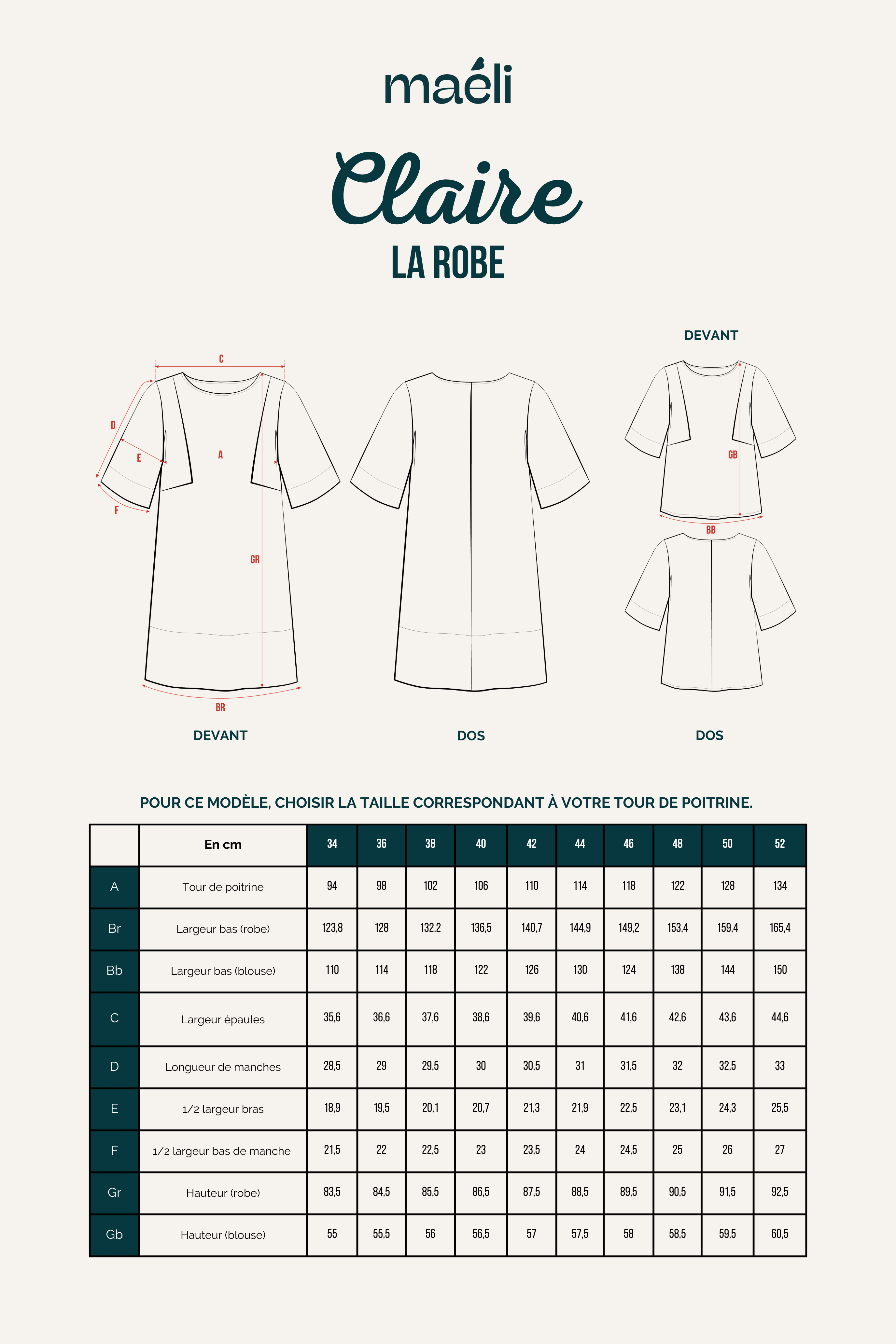 Découvrez le patron de la robe Claire, une pièce intemporelle au design épuré et élégant.