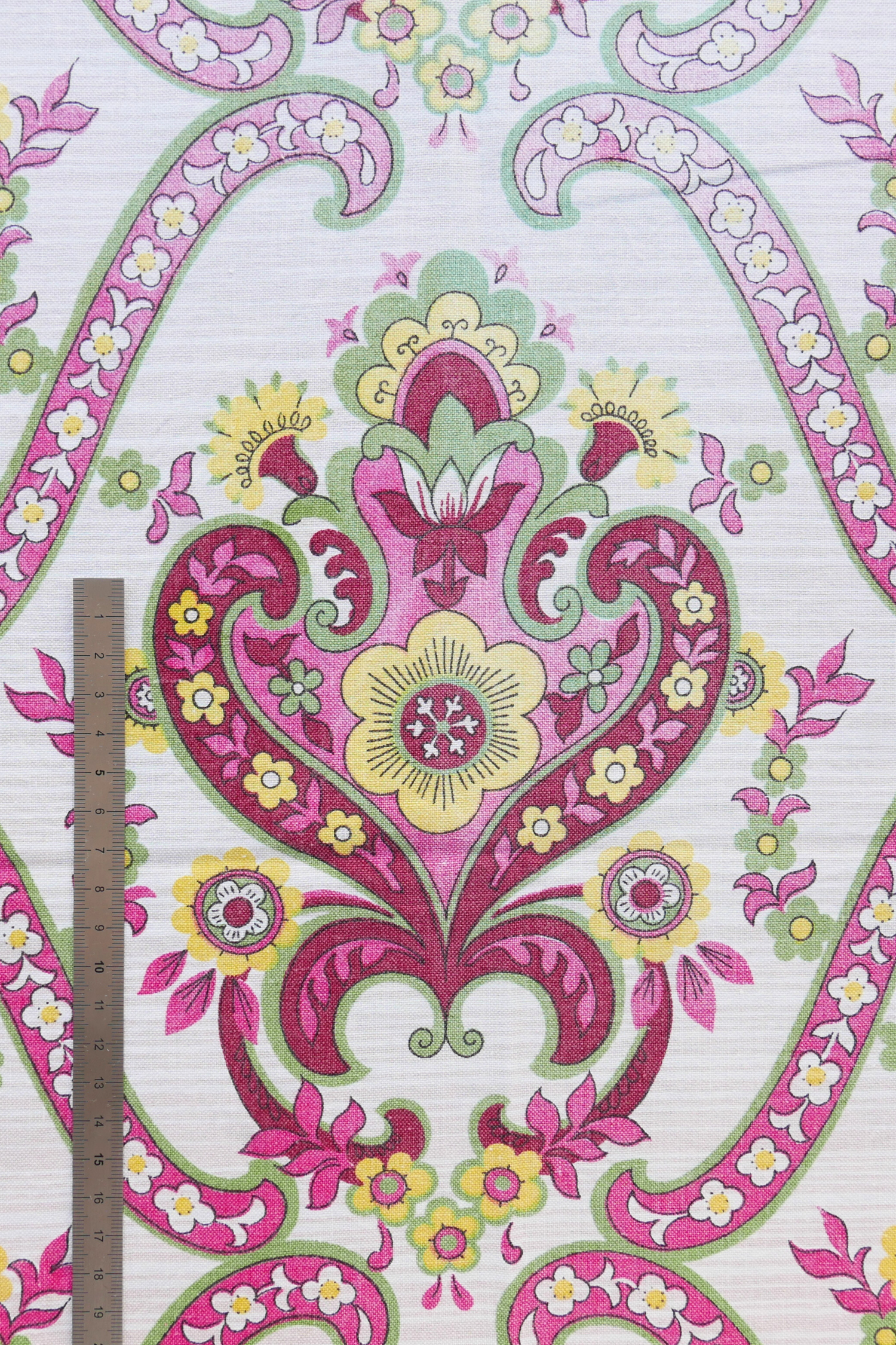 Tissu - Coton - Fond beige avec des motifs floraux roses, verts et jaunes - 120 * 164 cm