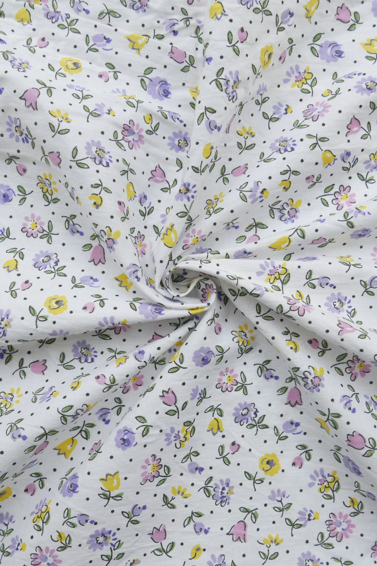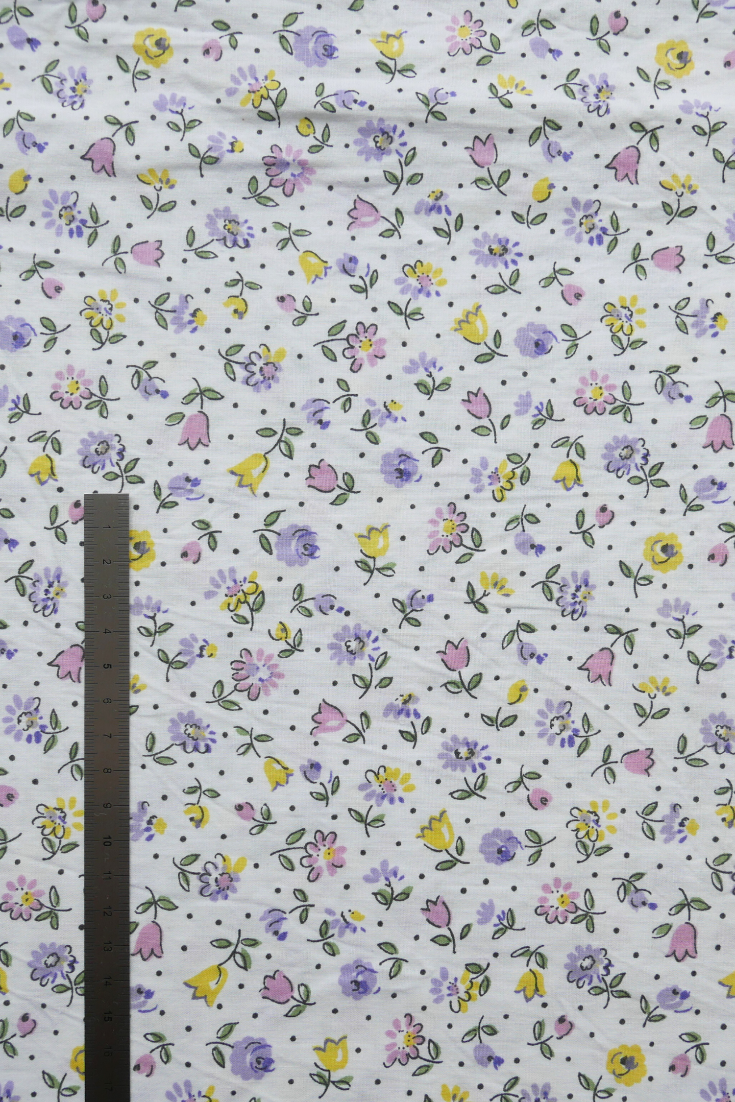 Tissu - Coton - Fond blanc avec des petites fleurs violettes, roses et jaunes - 81 * 192 cm