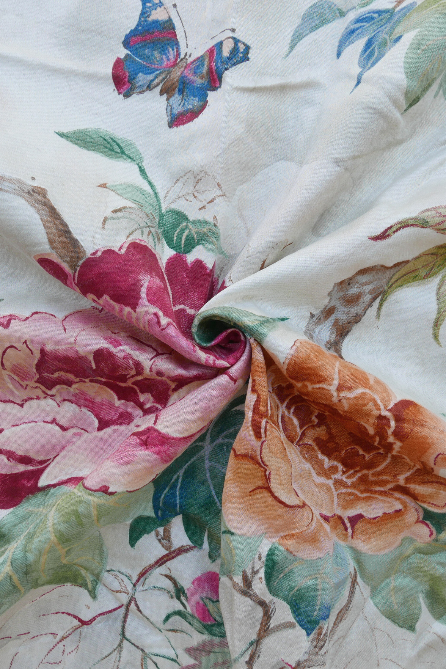 Tissu - Coton - Fond écru avec des fleurs aux teintes roses, orange et vertes - 71 * 71 cm