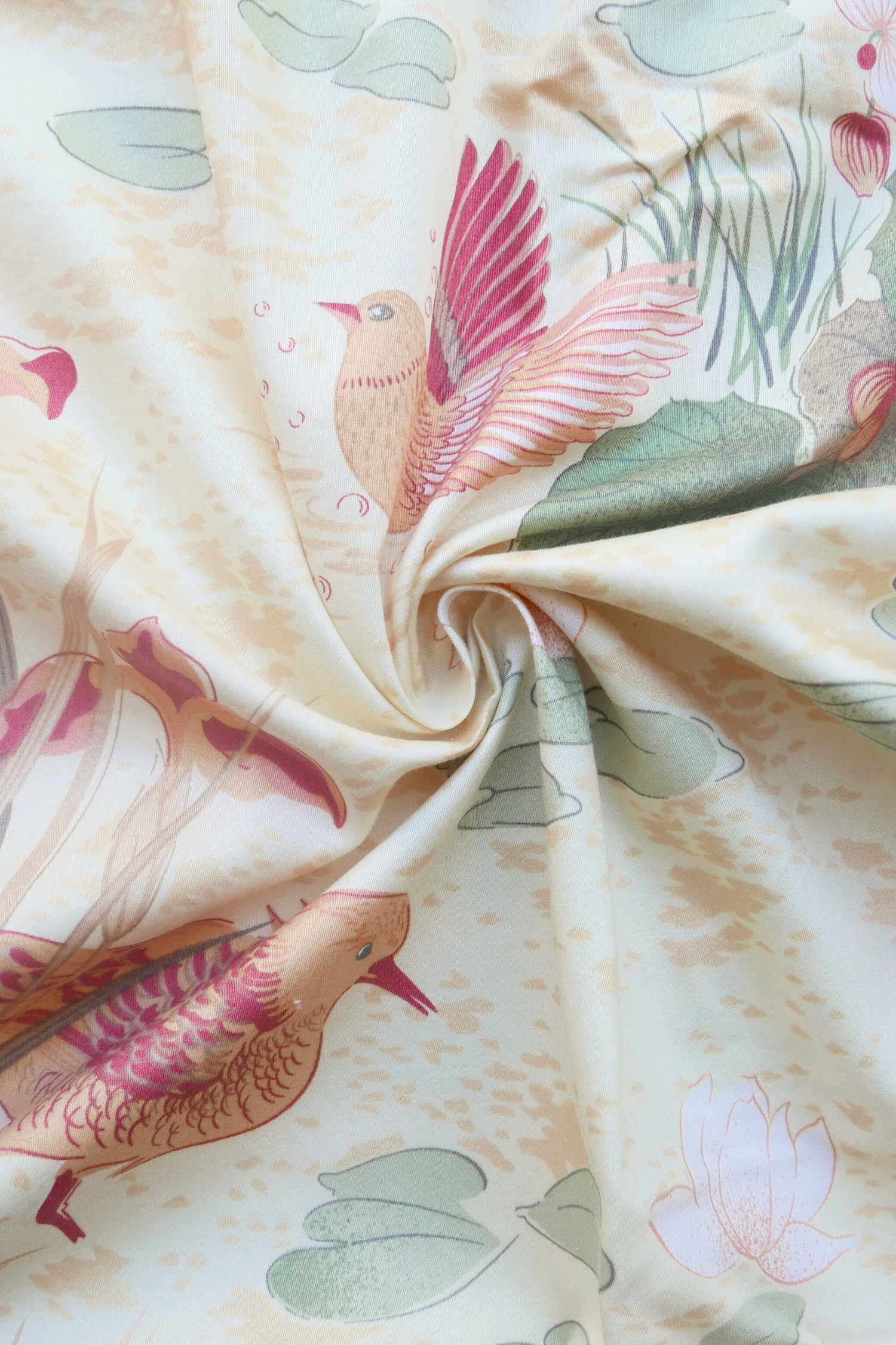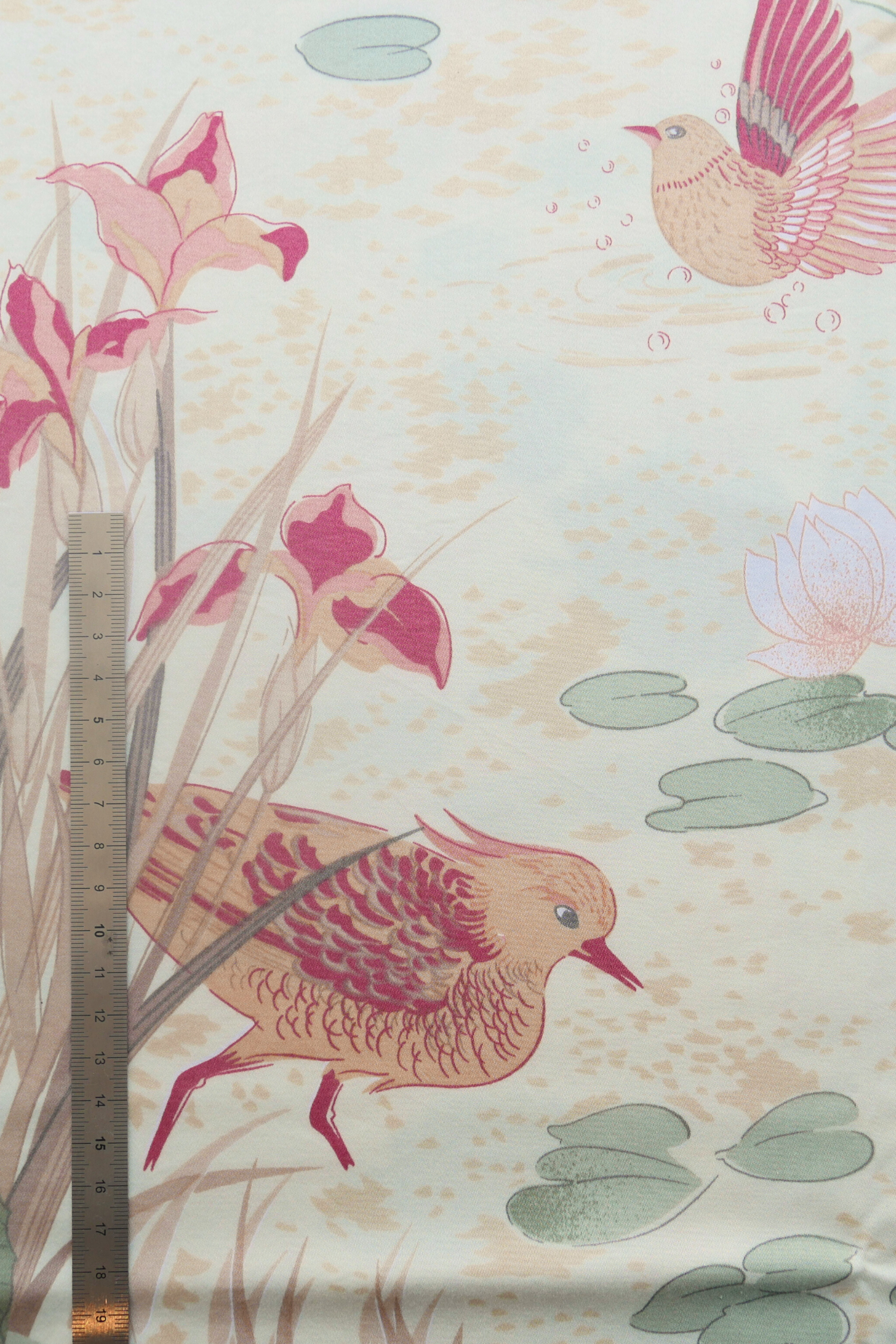 Tissu - Coton - Fond jaune motif oiseaux et fleurs - 118 cm * 185 cm