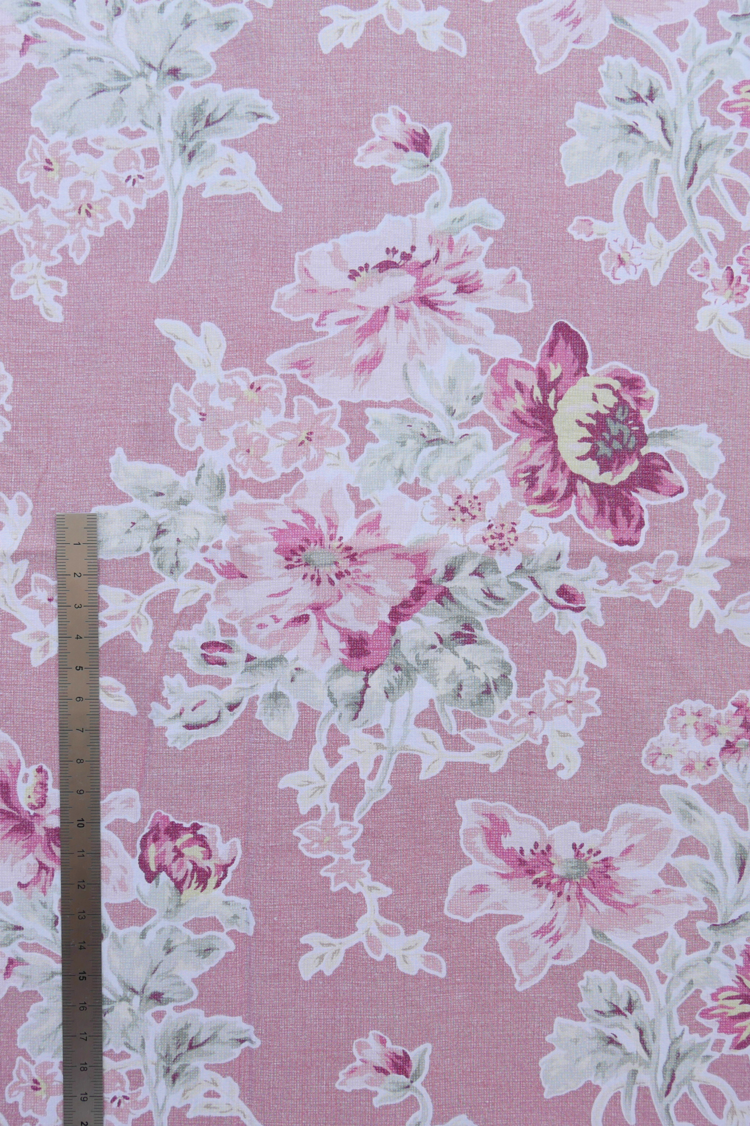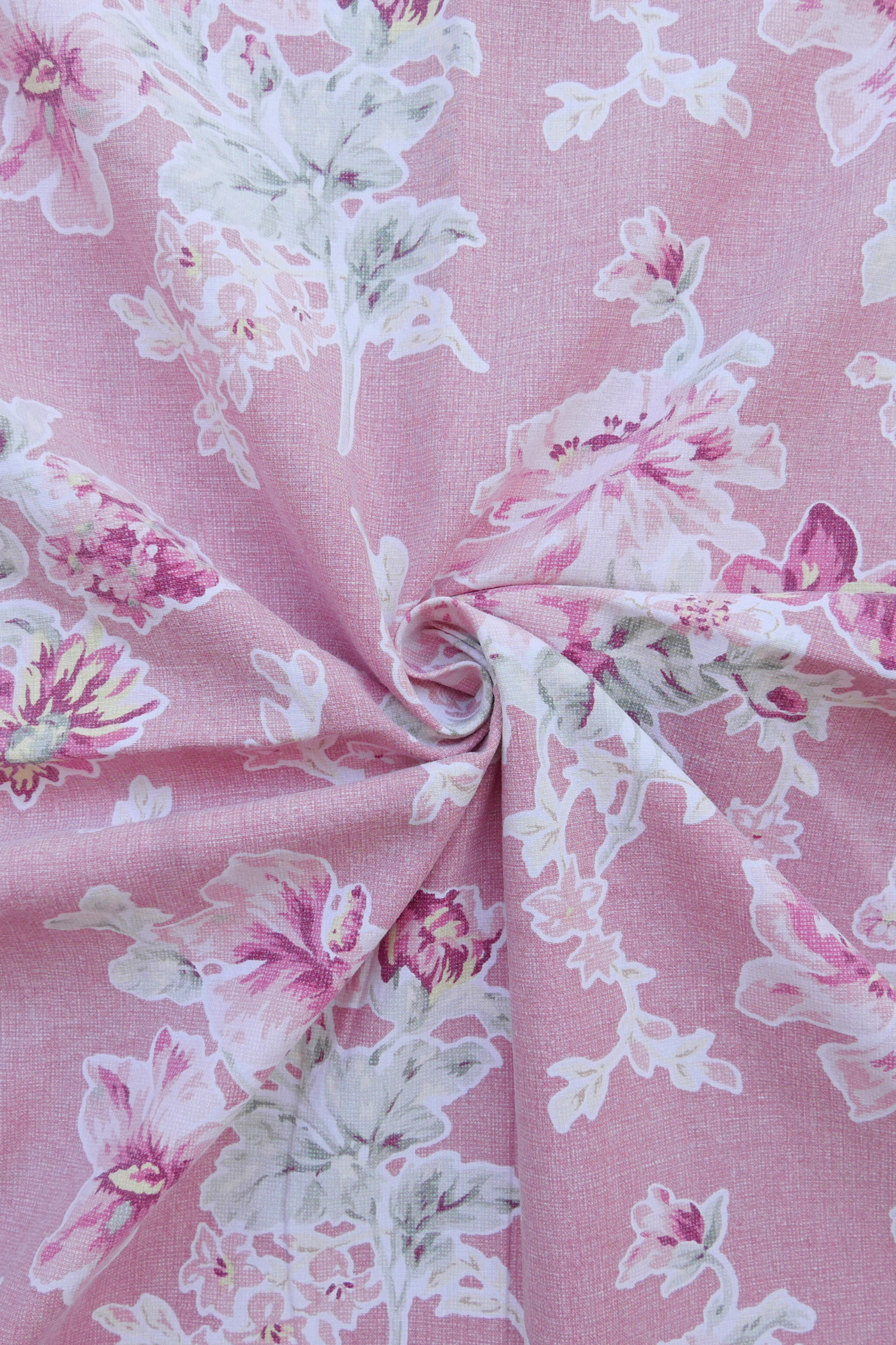 Tissu - Coton - Fond rose avec des fleurs aux teintes roses et jaunes - 193 * 55 cm