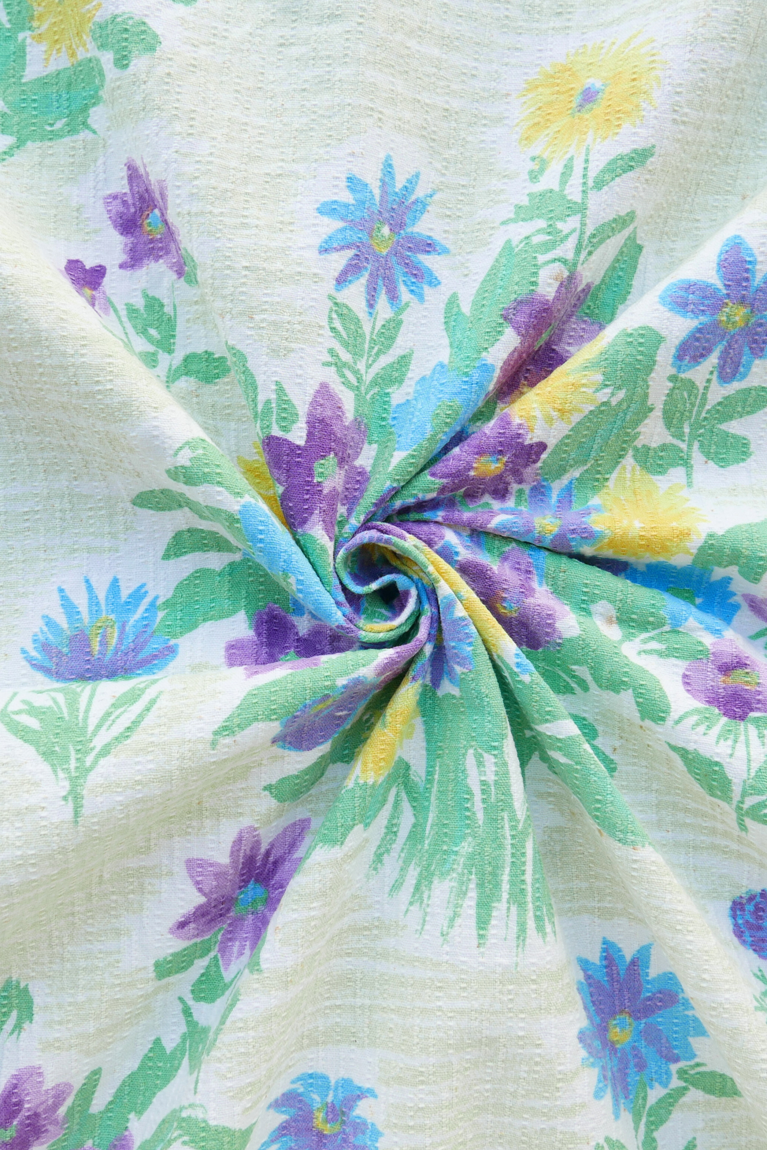 Tissu - Coton - Fond vert avec des fleurs jaunes, bleues et violettes - 120 * 268 cm