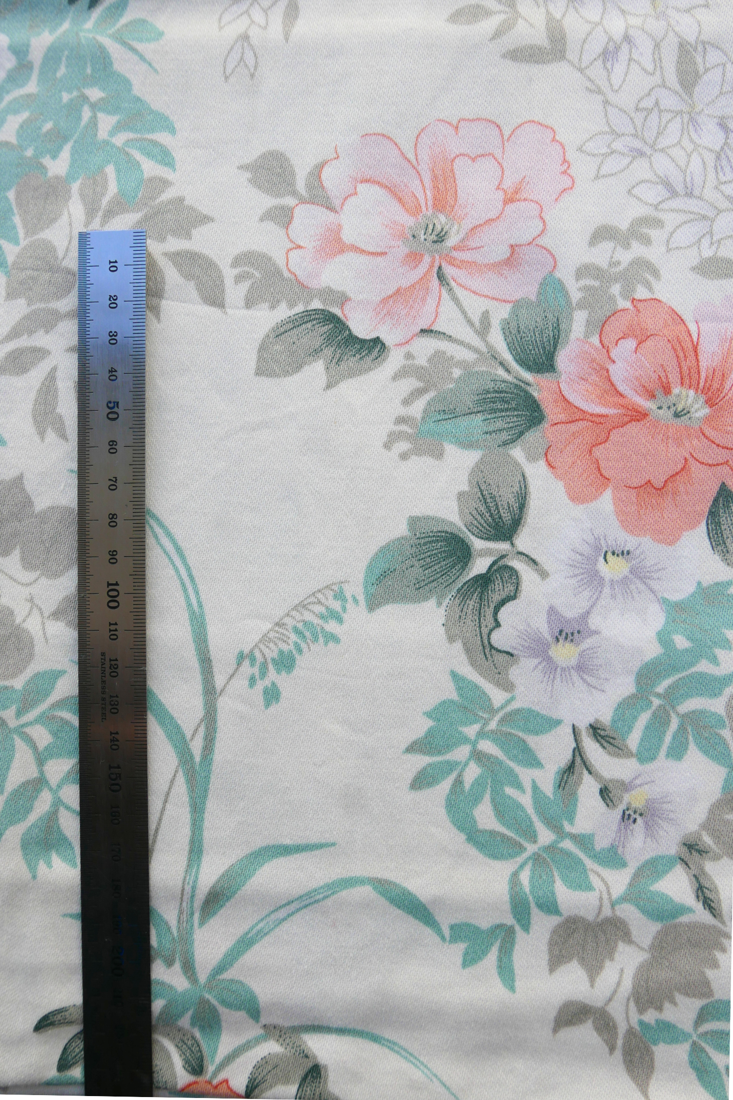 Tissu - Polyester - Fond beige avec des fleurs aux teintes roses - 145 cm * 206 cm