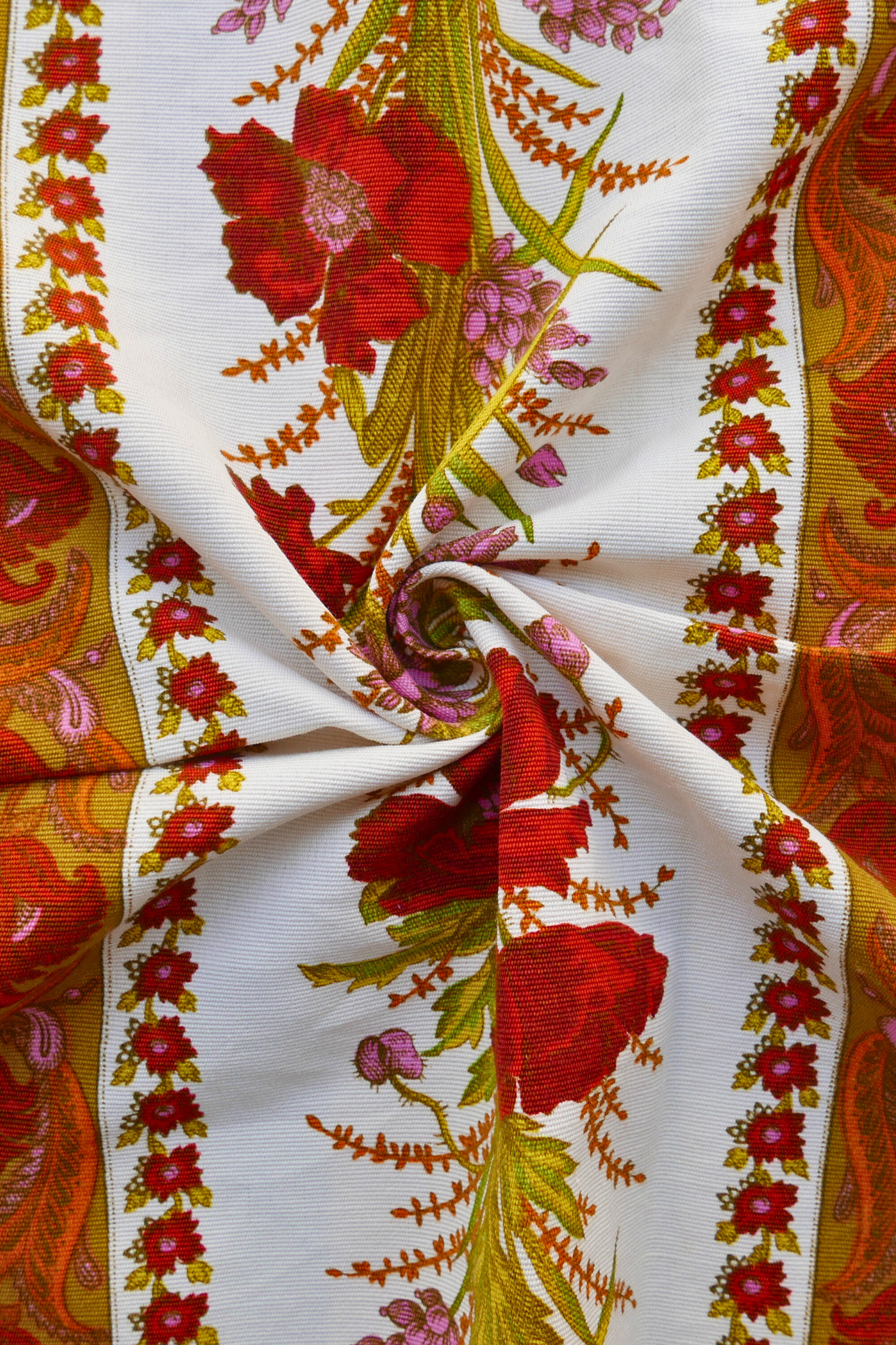 Tissu - Polyester - Fond blanc avec imprimés floraux aux teintes rouges, roses et orange - 56 * 67 cm
